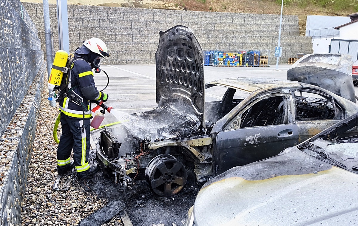 Zwei Fahrzeuge auf Edeka-Parkplatz in Eschenbach ausgebrannt