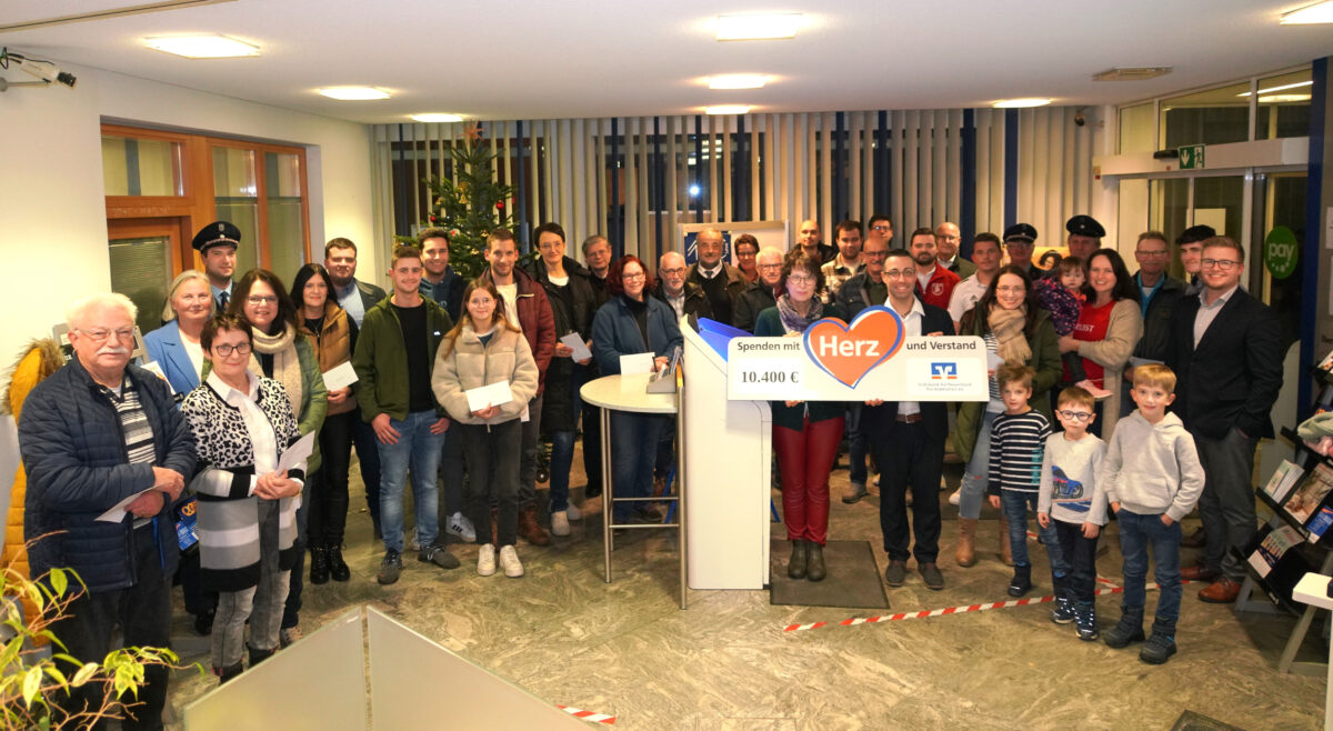Bürgermeister Josef Beimler, Pfarrer Norbert Götz, Ehrenbürger Georg Schmidbauer, Schulrektorin Carina Hartwig, Kita – Leiterin Sonja Kick und eine Vielzahl an Vertretern von Vereinen und Institutionen waren in die altbekannte Raiffeisen – Filiale, die nach Fusion nun zur Volksbank – Raiffeisenbank Nordoberpfalz eG gehört, gekommen. Als Vertreter der neuen Organisation war Regionalmarktleiter Christian Seidl (Neustadt/WN) bei der Spendenübergabe dabei.