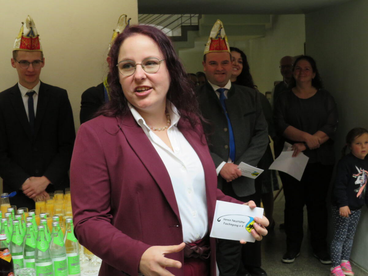 Gästen den Neustädter Faschingsverein. „Ich nehme die fünfte Jahreszeit in Neustadt durchaus ernst“. Er wünschte den Prinzenpaaren eine gute Regierungszeit. Vorstand Jürgen Trescher bedankte sich bei Bürgermeister Giering für den Empfang im Rathaus. Präsidentin Lisa Schedl stellte die Mitwirkenden der Saison 2025 vor.