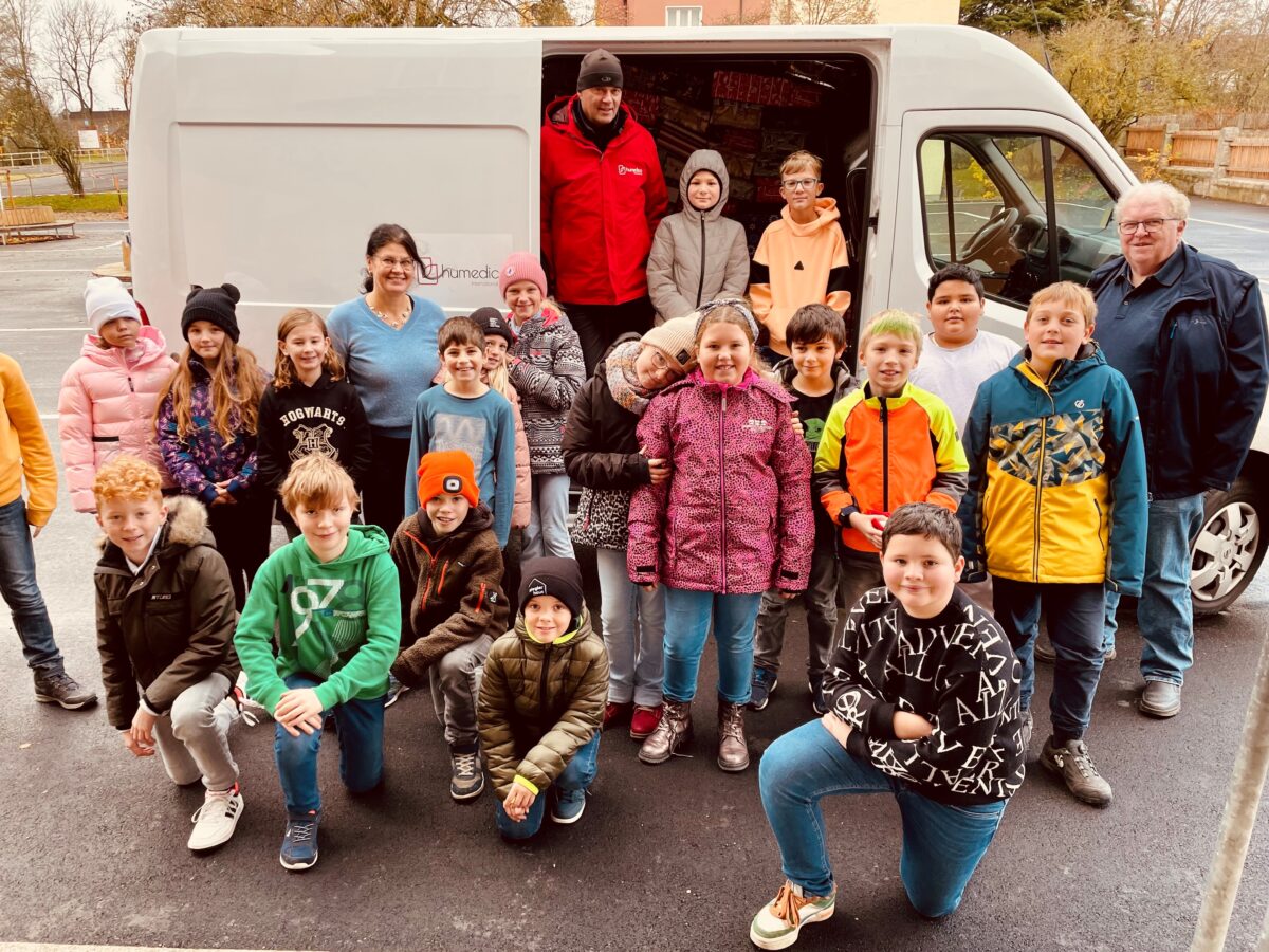 Am 16. November war es dann endlich so weit: Die freundlichen Fahrer Thomas und Christian holten die bunten Pakete ab. Und die Schulkinder der Klasse 4b haben fleißig beim Einladen mitgeholfen.