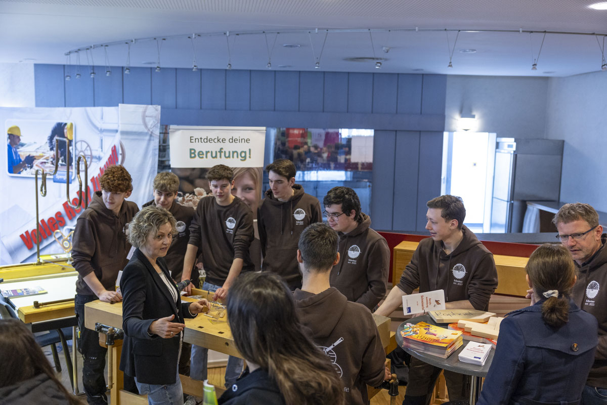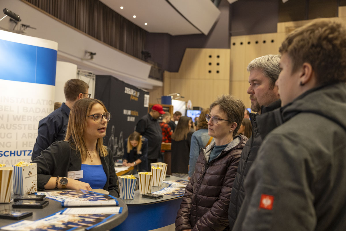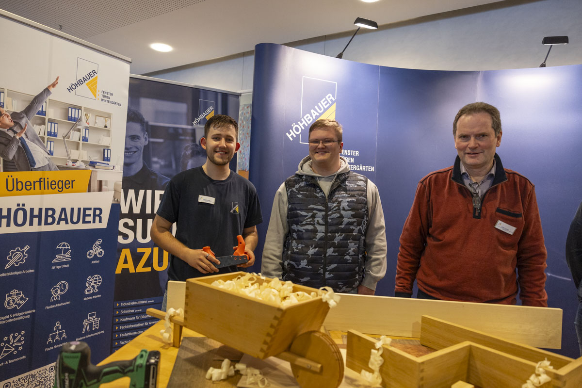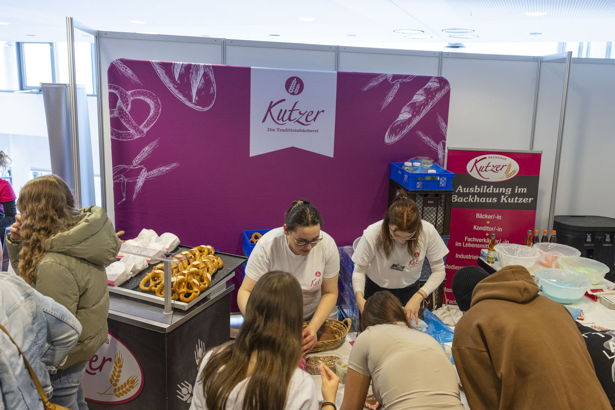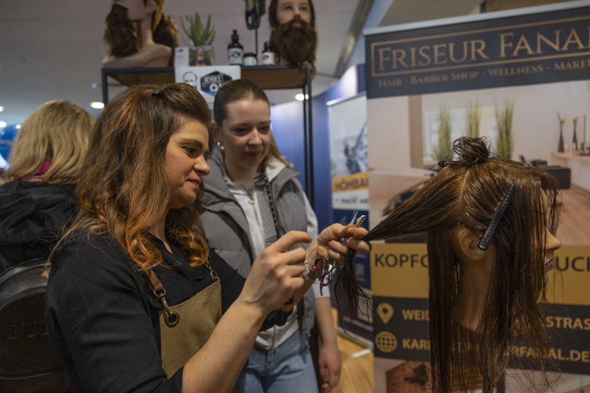 Neben der Möglichkeit, sich ausführlich über das Ausbildungsangebot zu informieren und direkt mit Vertretern der Unternehmen in Kontakt zu treten, konnten die Besucher auch selbst in verschiedene Berufsfelder eintauchen. Interessierte durften Haare stylen und schneiden, Holzwerkstücke bearbeiten, Maschinen bedienen oder in die digitale Welt abtauchen. Bei der Ausbildungsmesse war alles möglich. Eine große Fülle an Informationsmaterialien und nicht wenige Werbegeschenke rundeten das Messeerlebnis ab.