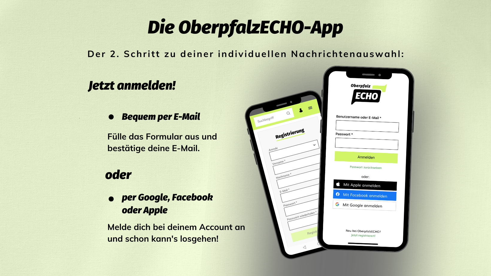 Wenn du neu in der OberpfalzECHO-App bist, gibt es grundsätzlich zwei Möglichkeiten für die Anmeldung.