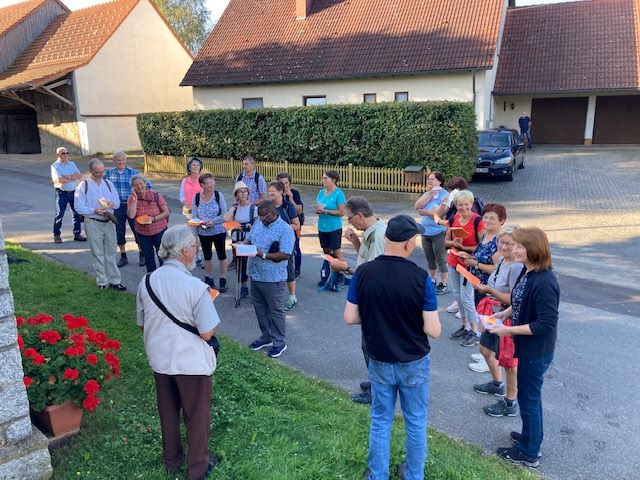 Besondere Momente der Besinnung fanden während des Anstiegs zum Fahrenberg statt, wo an bedeutende Ereignisse aus dem Leben von Jesus und der Heiligen Familie erinnert wurde. In einer eindrucksvollen Schlussandacht in der Gnadenkapelle – da die Wallfahrtskirche aufgrund einer Hochzeit nicht zugänglich war – dankte die Pilgergemeinschaft für das Leben und erhielt Dankesworte von Pilgerführer Klaus Härtl: “Vertgelts Gott für das Mitpilgern.” Eine Brotzeit beim Gipfelwirt bot anschließend Gelegenheit für gemütliches Beisammensein und stärkte die Gemeinschaft, bevor es mit Privatautos zurück nach Eslarn ging.