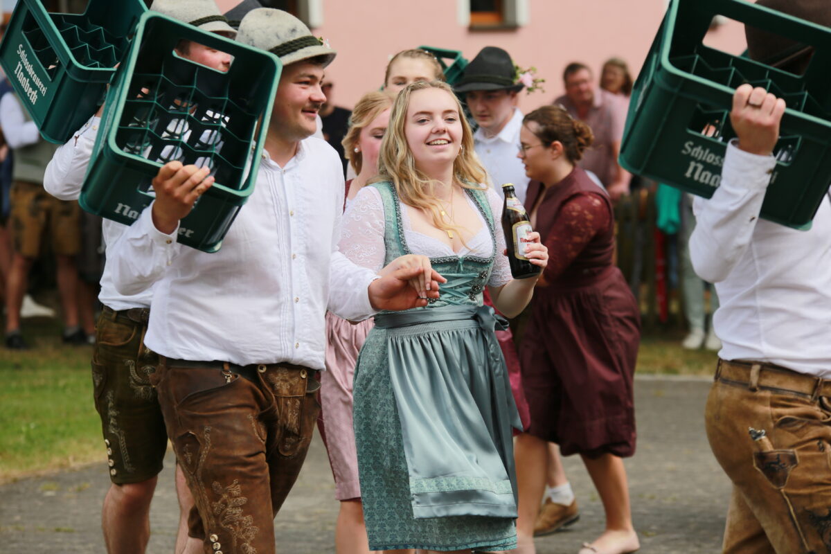 Beim Gstanzl-Singen mussten einige andere Kirwavereine und auch eigene Burschen daran glauben: Sie wurden kräftig derbleckt. Nach einigen tollen Tänzen – dazu gehörte auch ein Bierkastentanz, den sich die Kirwapaare selbst ausgedacht hatten – wurde bei einem Walzer zur Musik der Gruppe Heidirl’n das neue Oberkirwapaar ermittelt: Madeleine Frost und Andreas Ehbauer. Zum Dank warfen die beiden den Kindern Süßes zu. Der Sonntagabend klang mit dem Vilstal Echo am Stodl aus. Der Kirwabär wurde am Montag durchs Dorf getrieben. Wer ihm über den Weg lief, bekam sein Fett weg. Der Abend wurde mit der Band Rundumadum und mit der Kirwabaumverlosung abgeschlossen.