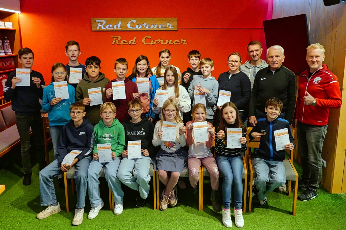 Von Mai bis September fanden beim VfB Rothenstadt Trainingseinheiten statt, bei denen Sportlerinnen und Sportler im Alter von 8 bis 80 Jahren in den verschiedenen Disziplinen des Deutschen Sportabzeichens trainierten. Unter den kritischen Augen der Prüfer Hans Hiermaier, Simone Kammerer und Kilian Schönberger legten die Teilnehmenden ihre Leistungen ab und erhielten kürzlich im Sportheim Rothenstadt ihre verdienten Auszeichnungen.