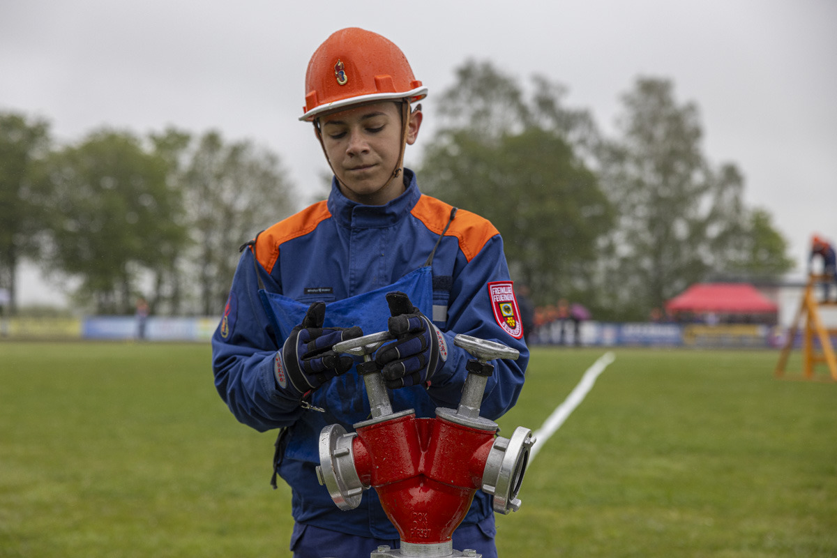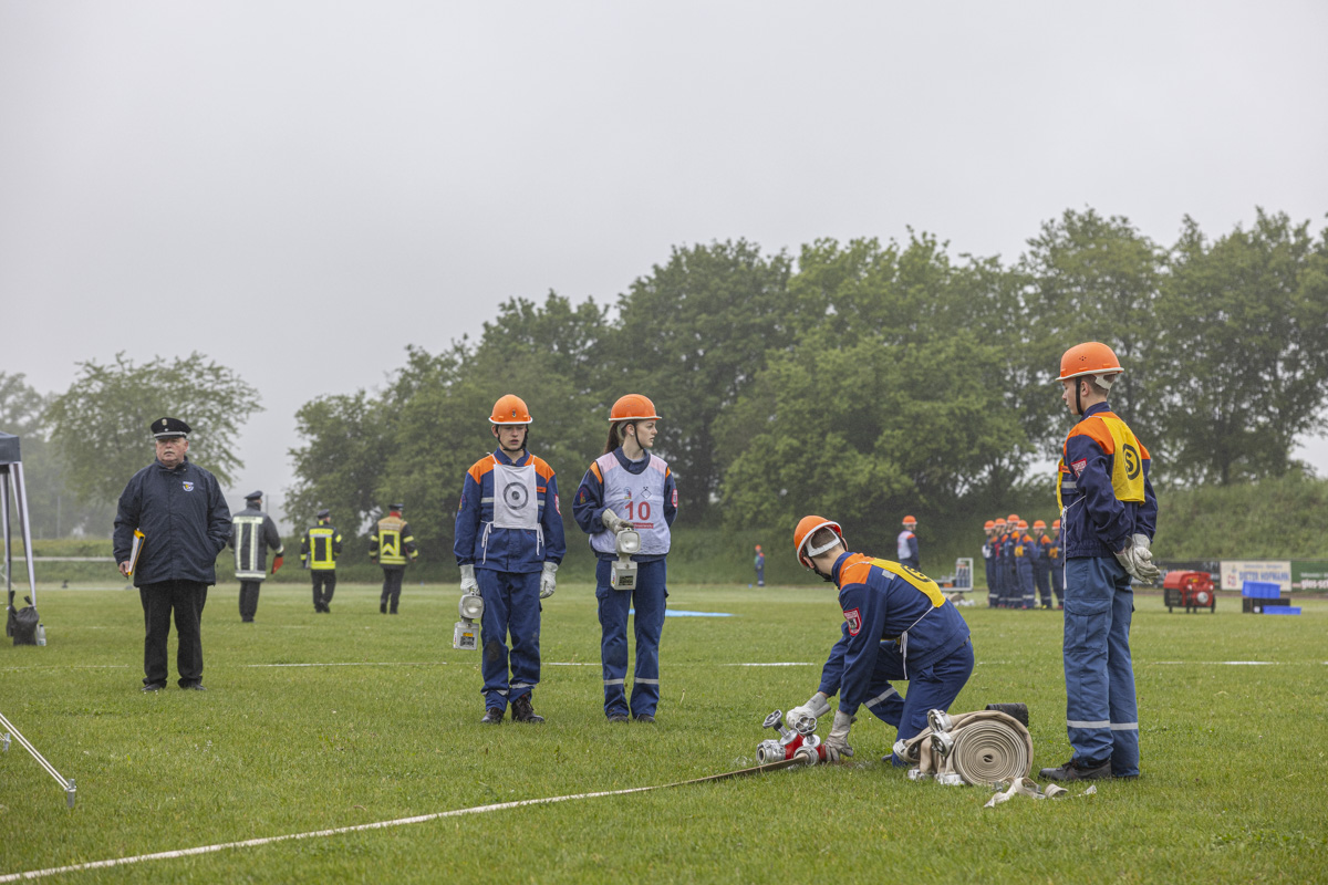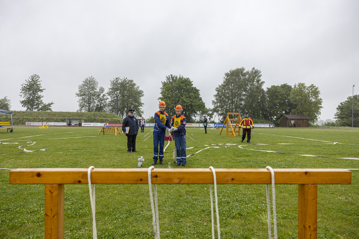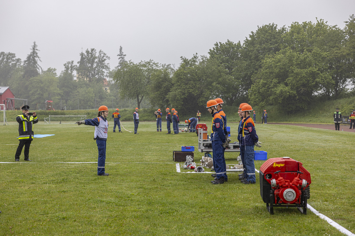 32 Mannschaften von Jugendfeuerwehren aus der gesamten Oberpfalz haben am Wochenende trotz strömenden Regens viele spannende Stationen gemeistert und beim Bezirksentscheid der Deutschen Jugendfeuerwehr ordentlich gepunktet. Als Sieger konnte sich die Jugendfeuerwehr aus Tirschenreuth mit 1430 Gesamtpunkten behaupten.
