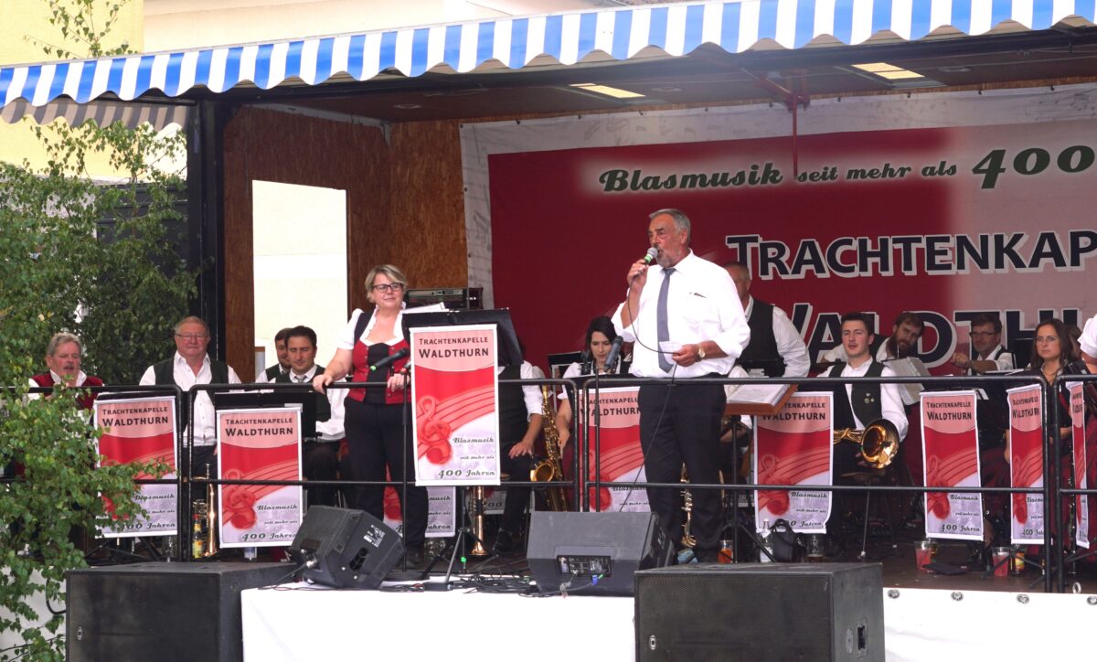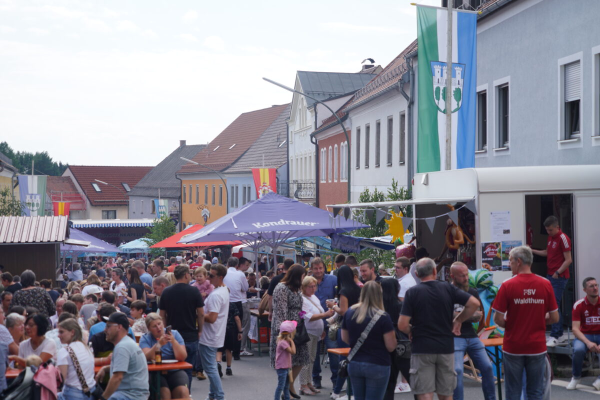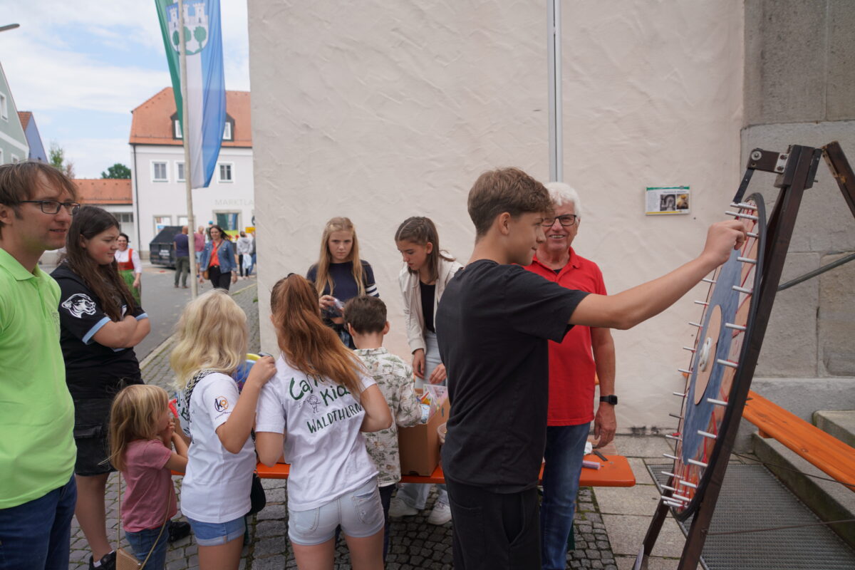 So wie jedes Jahr hatte der Bund Naturschutz den Abwasch übernommen. Am frühen Nachmittag sangen die “CantiKids” unter der Leitung von Manuela Grünauer. Die leckeren Kuchen des Frauenbunds in der Kaffeestube in den Raiffeisengaragen waren auch in diesem Jahr der Renner und gingen weg „wie die warmen Semmeln“. Der Marktplatz platzte schließlich bei zunehmender Hitze förmlich aus allen Nähten und die Einheimischen inklusive den Waldthurner Ehrenbürger Georg Schmidbauer aber auch die vielen Gäste strömten ins „Gänsbürgerzentrum“.