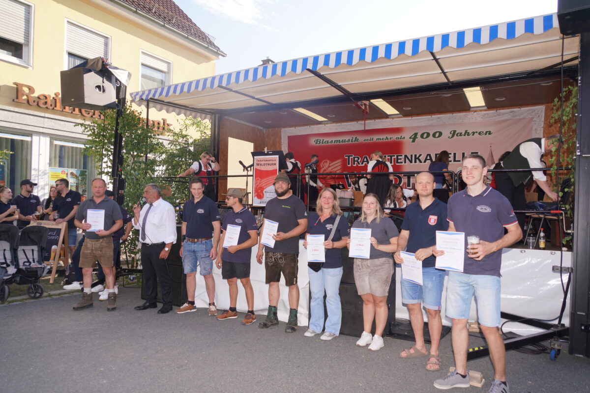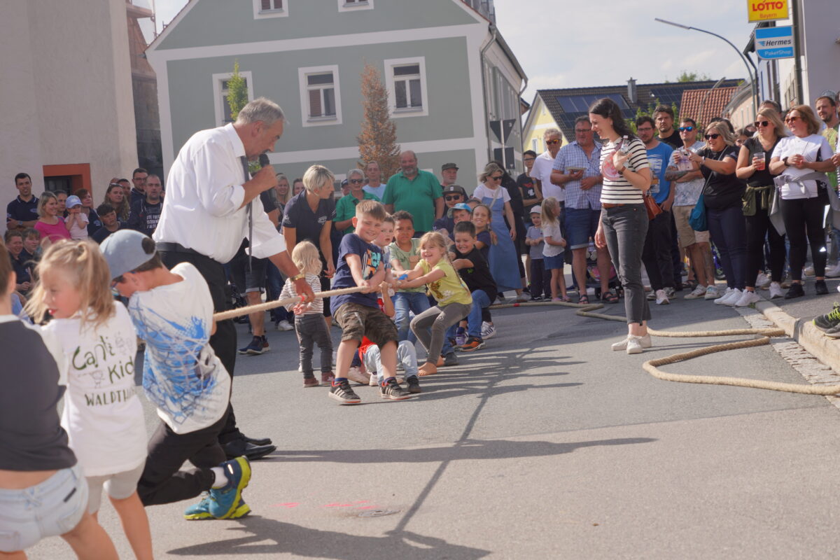 Schließlich waren Muskeln gepaart mit Geschick gefragt. Die Seilzieher der Fahrenbergauswahl hatten zum fröhlichen Bürgerfest-Seilzieherturnier für Männer, Frauen und Kinder eingeladen. Bürgermeister Josef Beimler fungiert äußerst kompetent und streng letztmals als Gemeindeoberhaupt als Referee.