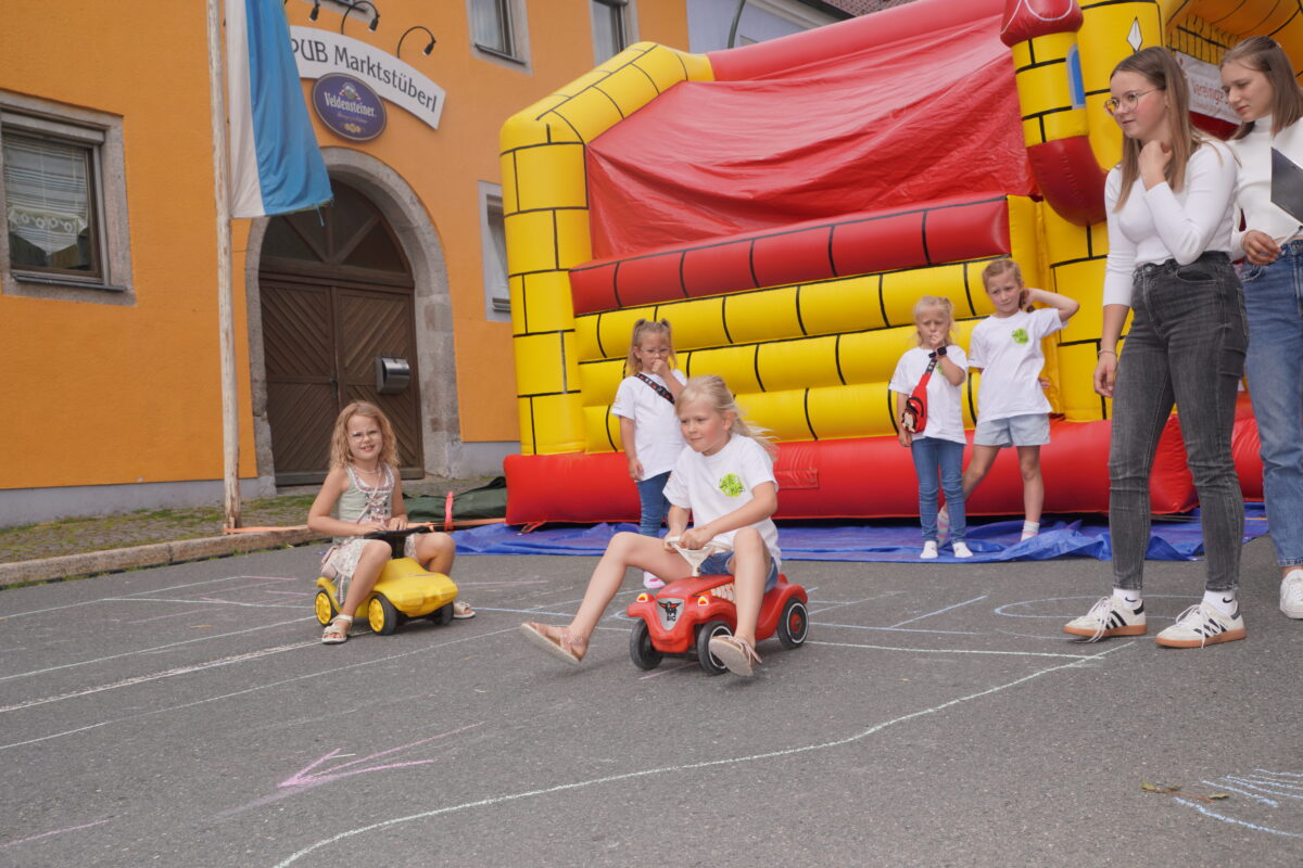 Unterhaltung pur war auch für die Kids an der Hüpfburg betreut vom Soldaten- und Kriegerverein, Bobbycarrennen der Landjugend, Dosenwurf (SPD), Glückshafen des PGR oder das Glücksrad des Tennisclubs.