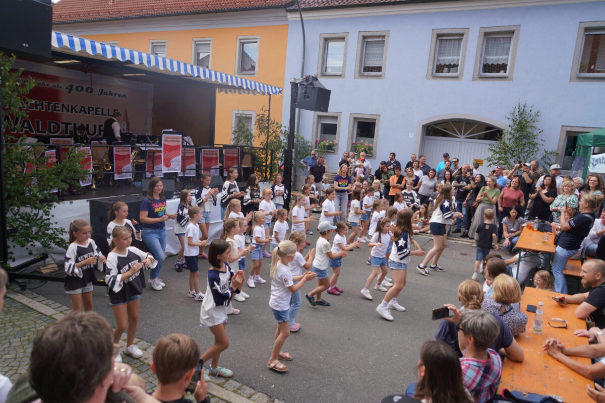 Eine besondere Attraktion waren die TanzKids unter der Leitung von Manuela Grünauer und Judith Friedl, die bestens vorbereitet vor der großen Bühne ihre unglaubliche Tanzfreude zeigten. Der Lennesriether Hans Pausch hatte den Auftritt der ungarischen Volkstanzgruppe aus dem Gymnasium von Gödöllő organisiert (Austauschpartner des Gymnasiums Neustadt/WN).