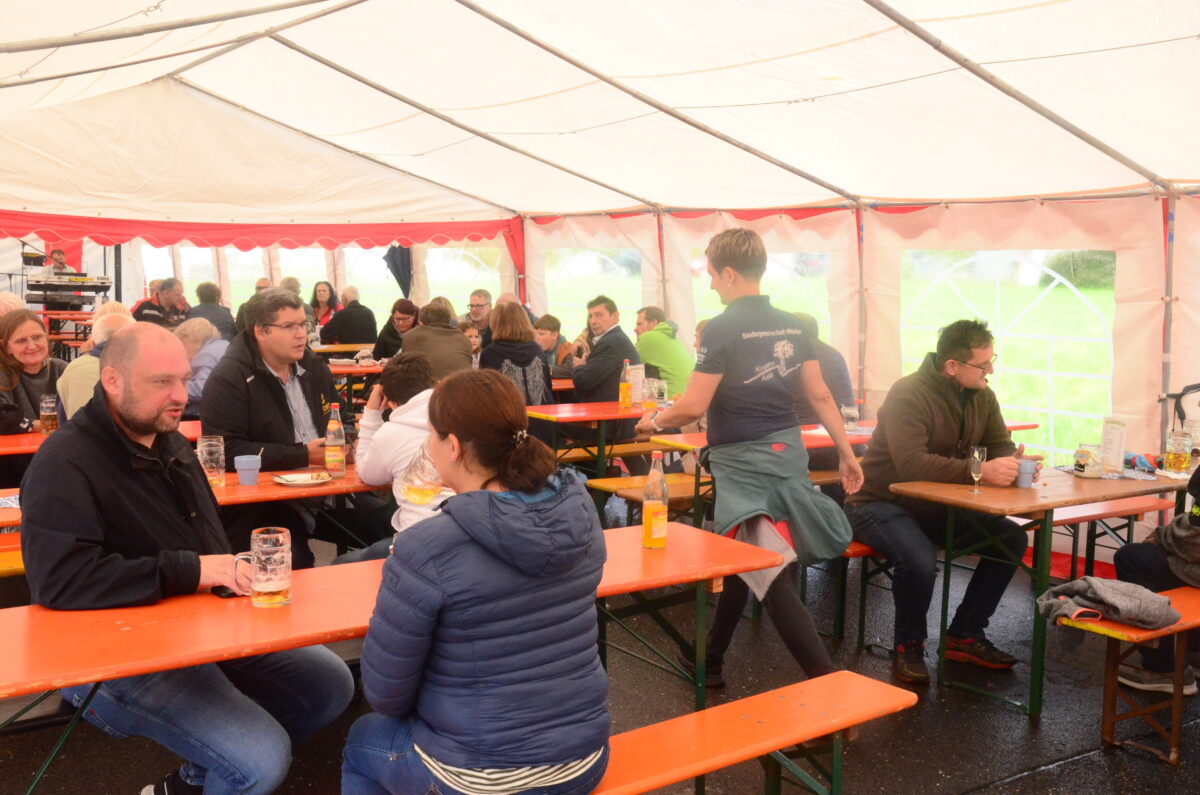 Das Sommerfest der Krumme Äcker Siedler begann mit einem Regenguss und endete im Sonnenschein. Viele Siedler und Gäste nutzten am Sonntag die Gelegenheit für einen Bummel zum Festzelt. Stadtpfarrer Gottfried Schuhbach und Pfarrvikar Jomet Joy zählten zu ersten Besuchern, die den Mittagstisch besuchten. Es gab Rouladen und Schweinsbraten. Am Nachmittag kamen neben Bratwurstsemmeln die beliebten Siedler-Burger auf den Grill, die schon beim Bürgerfest für reißenden Absatz sorgten.