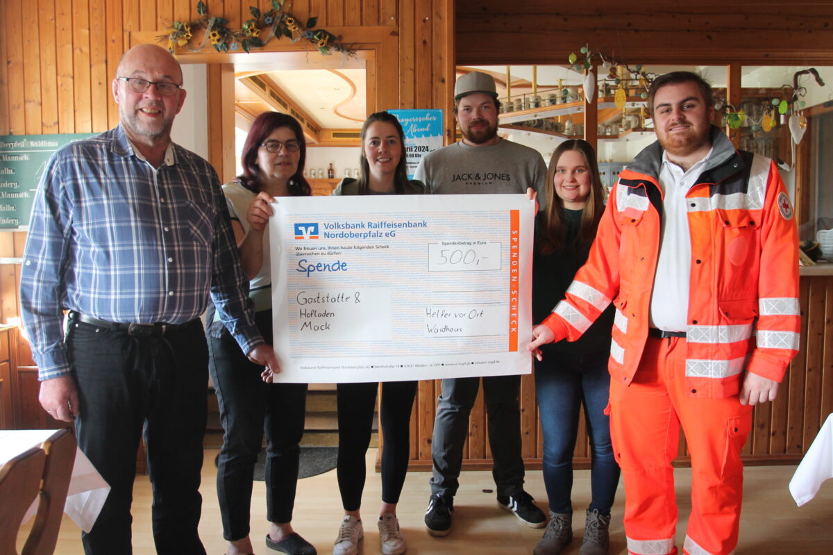 „Wir wissen eure Leistungen für die Allgemeinheit zu schätzen“, sagte Hermann Mack, als er am Karfreitag gemeinsam mit seiner Ehefrau Angelika sowie Kristin, Florian und Maximilian Mack und Vanessa Nossek im Namen der Gaststätte und des Hofladens Mack 500 Euro übergab. „Deshalb ist es für uns eine Selbstverständlichkeit, euch unter die Arme zu greifen.“