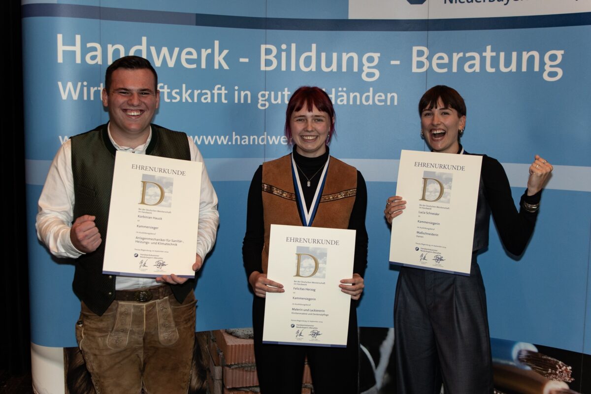 Dr. Georg Haber lobte auch das Engagement der Ausbilder. “In Zeiten des Fachkräftemangels sind wir nicht nur auf unsere gut ausgebildeten Nachwuchshandwerker, sondern auch auf Menschen angewiesen, die bereit sind, ihr Fachwissen, ihre Lebenserfahrung und ihre Herzensbildung an die nächste Generation weiterzugeben.” Der stellvertretende HWK-Hauptgeschäftsführer Hans Schmidt nannte die Geehrten “Ausnahmetalente” und prophezeite ihnen eine glänzende berufliche Zukunft. Der Erste Bürgermeister von Neunburg, Martin Birner, wies auf die Wichtigkeit des Handwerks als Arbeitgeber vor Ort und als Motor für die regionale Wirtschaft hin und wünschte den Preisträgern alles Gute für ihre Zukunft.