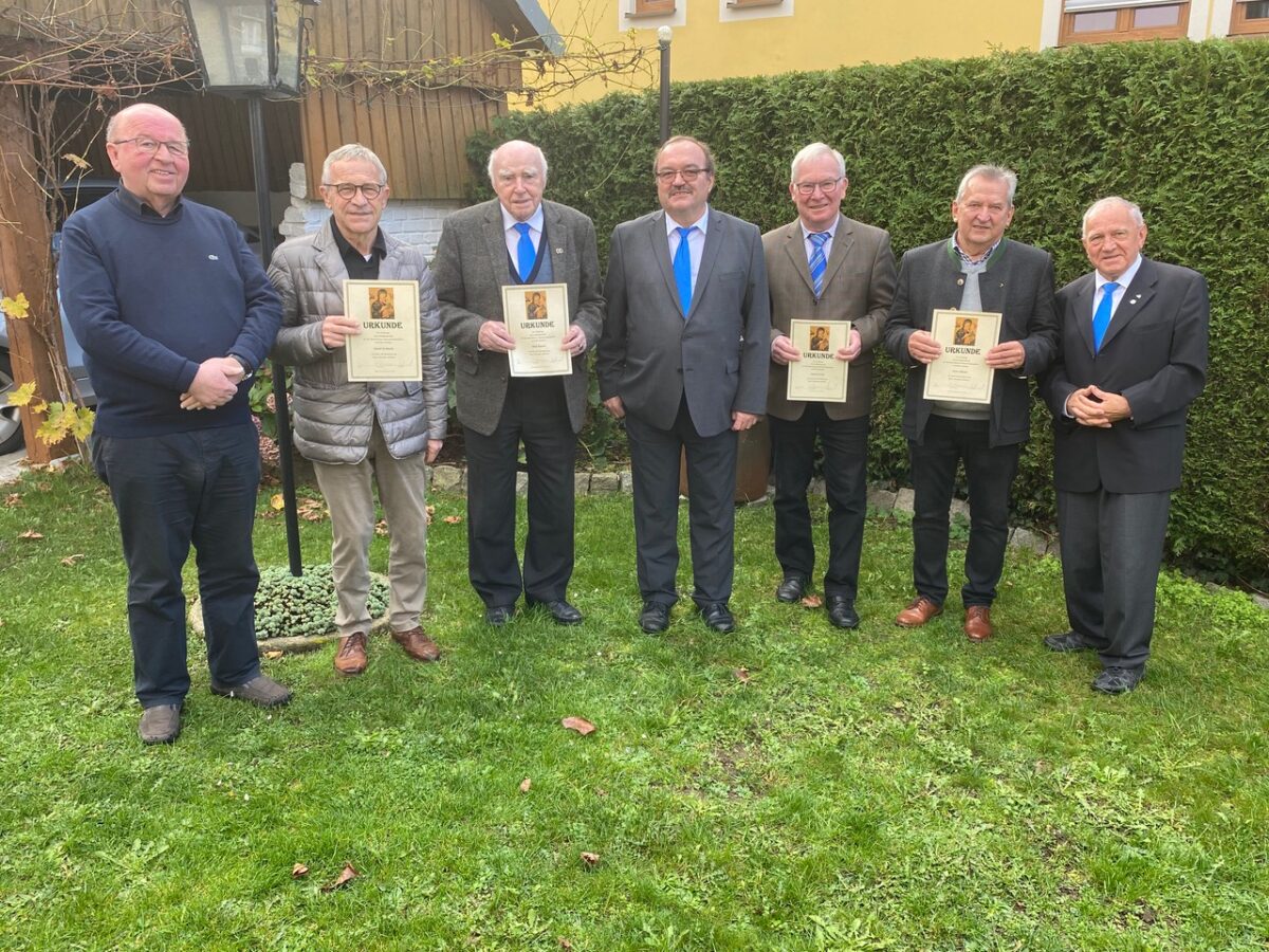 Erfreulich war die stattliche Zahl von Ehrungen für langjährige Mitgliedschaft in der Kongregation. Für 25 Jahre wurden Johann Eckl, Franz Brandl jun., Michael Burger, Bernhard Zimmet, Bernhard Nößner, Hans Maier und Josef Grötsch, für 50 Jahre Richard Spickenreither, für 60 Jahre Richard Bauer und für 70 Jahre Max Bauer, Franz Brandl sen. und Michael Kleber von Bezirkspräses Pater Josef Schwemmer und Obmann Dr. Andreas Zinkl geehrt.
