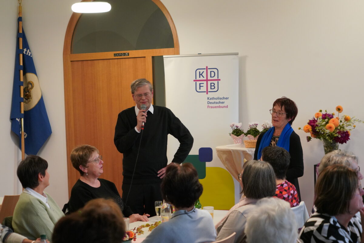 Der einzige Herr im Verein, der Waldthurner Pfarrer Norbert Götz, der geistlicher Beirat ist, meinte, dass er als „Götz der Dritte“ in Waldthurner von den katholischen Frauen sehr beeindruckt sei, was sie das ganze Jahr so leisten, „Vergelt’s Gott – mit euch ist eine schönes zusammenleben und ich brauch mich nicht ärgern!“. Ansonsten gratulierte der Geistliche und meinte mit einem Augenzwinkern, dass er nicht zu lange reden dürfe, denn wenn wie bei der Predigt in der Kirche, aber auch bei der heutigen Geburtstagsfeier ein verstärktes Husten einsetzt, sei es Zeit, zum Ende zu kommen. Bürgermeister Josef Beimler fühlte sich geehrte, dass man ihn zum Jubiläum eingeladen hatte. Er hatte ein kleines Geldgeschenk dabei, was er mit einem Lächeln und mit der Hoffnung verband, dass dies vielleicht wieder an eine Einrichtung in Waldthurn gespendet wird.