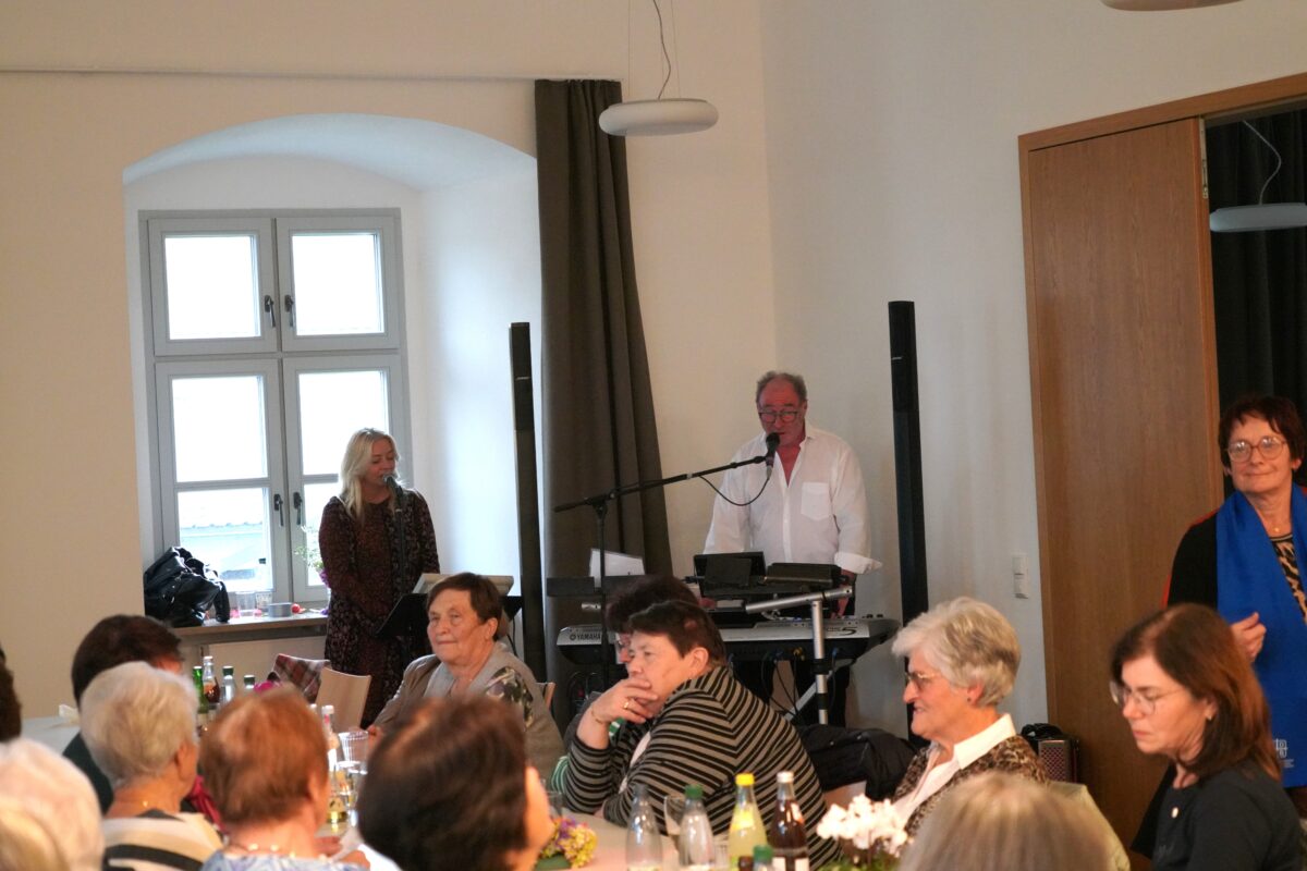 Nach einem Rosenkranzgebet in der Pfarrkirche St. Sebastian Waldthurn traf man sich im großen Saal des alten Schlosses, um auf die vergangenen 70 Jahren – aber auch auf die Gegenwart zu blicken. Der Waldthurner Musiker Richard Wagner umrahmte mit Sängerin Alexandra Adam aus Weiherhammer diese Geburtstagsfeier gekonnt musikalisch und brachte dem Waldthurner Frauenbund ein Geburtstagsständchen. Schriftführerin Agnes Härtl hatte die Chroniken und Alben der vergangenen 70 Jahre bereitgelegt und wer wollte, konnte darin schmökern und in Erinnerung schwelgen. Die beiden früheren Vorsitzenden Margaretha Bäuml (1979 bis 1987) und Maria Rupprecht, (1999 bis 2007), beide aus Albersrieth, wurden herzlich begrüßt.