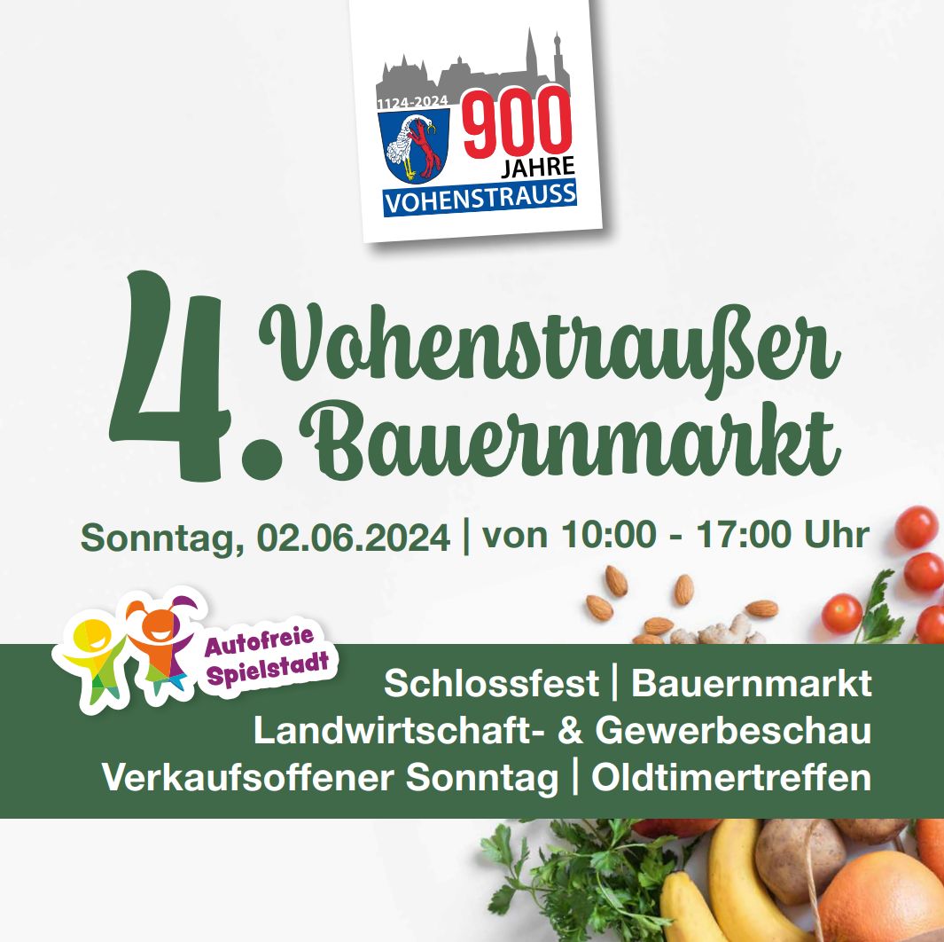 Auch am Festsonntag ist jede Menge geboten und das braucht Platz: Anlässlich des Bauernmarktes, der autofreien Spielstadt, der Gewerbeschau und des Schlossfestes wird die Vohenstraußer Innenstadt vom ehemaligen Bahnhof bis zum Schloss Friedrichsburg zur Erlebnismeile für Groß und Klein sowie Jung und Alt.
