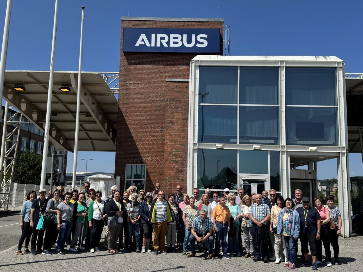 Weiter ging es zu Fuß und auf einem Fleetkahn durch Stade, gefolgt von einer beeindruckenden Werksführung bei Airbus. Die Gruppe hatte die seltene Gelegenheit, die großen Montagehallen zu besichtigen und die Endmontage der Flugzeuge aus nächster Nähe zu beobachten. Besonders fasziniert zeigten sich die Kemnather Gartler von dem Frachtflugzeug Beluga, welches sie mehrmals starten und landen sahen. Dieses Flugzeug ist speziell für den Transport von Flugzeugteilen zu den weltweit verteilten Montageorten konzipiert.