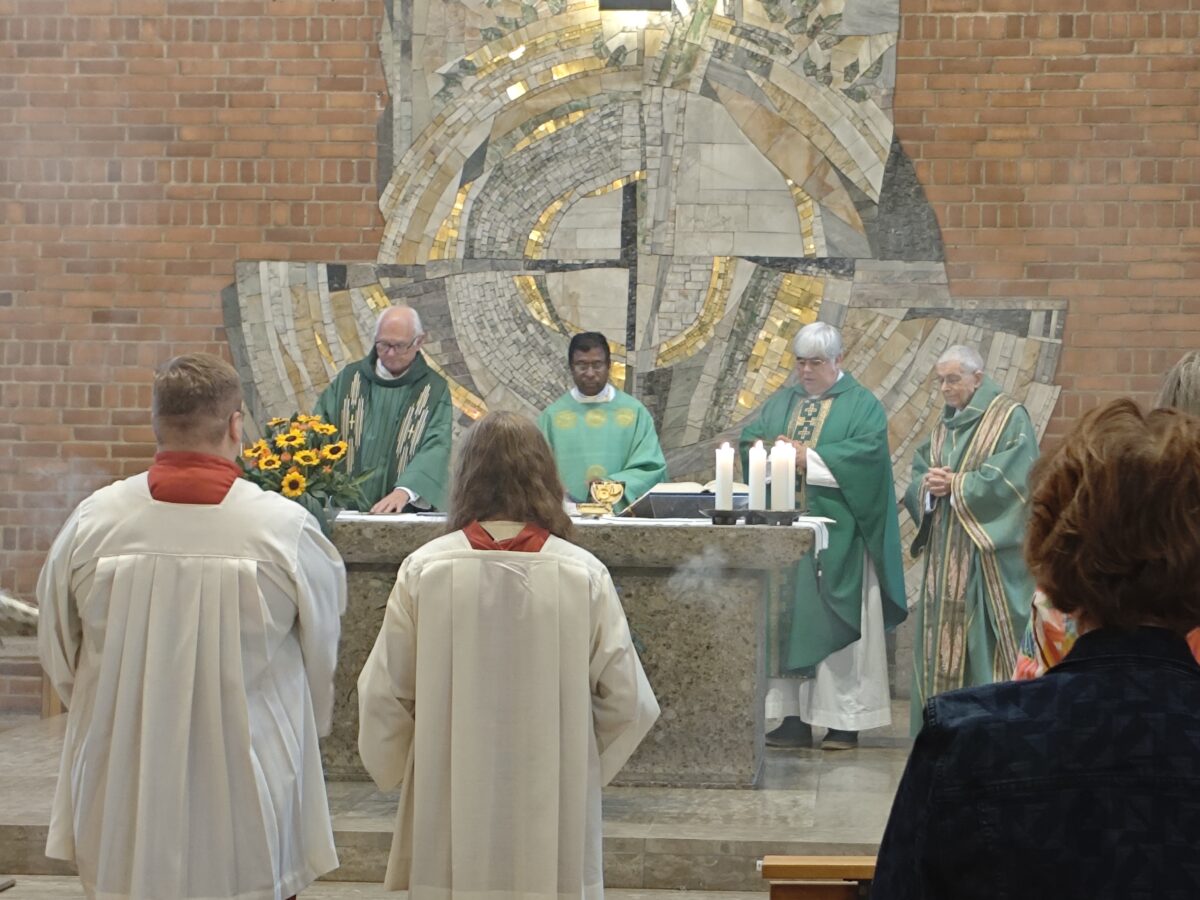 Neben ihm standen Pfarrer Thomas Jeschner, Prälat Johann Neumüller und Pfarrer i. R. Ludwig Taufer, die von einer überaus großen Ministrantenschar begleitet wurden. Musikalisch umrahmt wurde der Gottesdienst vom Projektchor, begleitet von Orgel-, Geigen- und Trompetenmusik.