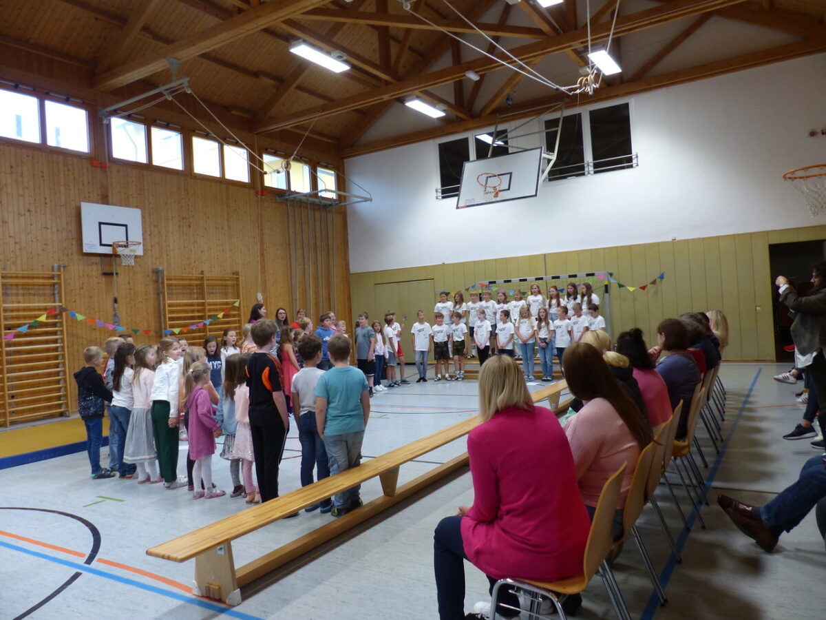 22 Kinder der Grundschule Leuchtenberg haben am letzten Schultag für immer diese Schule verlassen. Nachdem es die Zeugnisse gab, bildeten die Schüler der Klassen eins bis drei ein Spalier, durch das die Entlassschüler laufen durften und dabei symbolisch aus der Schule geschmissen wurden. Mit Applaus wurden sie in der Turnhalle von ihren Eltern empfangen. Aufgereiht saßen die Kinder und feierten gesanglich Abschied. Auch viele Abschiedstränen gab es unter den Kindern, da sich viele durch die unterschiedlichen zukünftigen Schulbesuche nicht mehr täglich sehen werden.