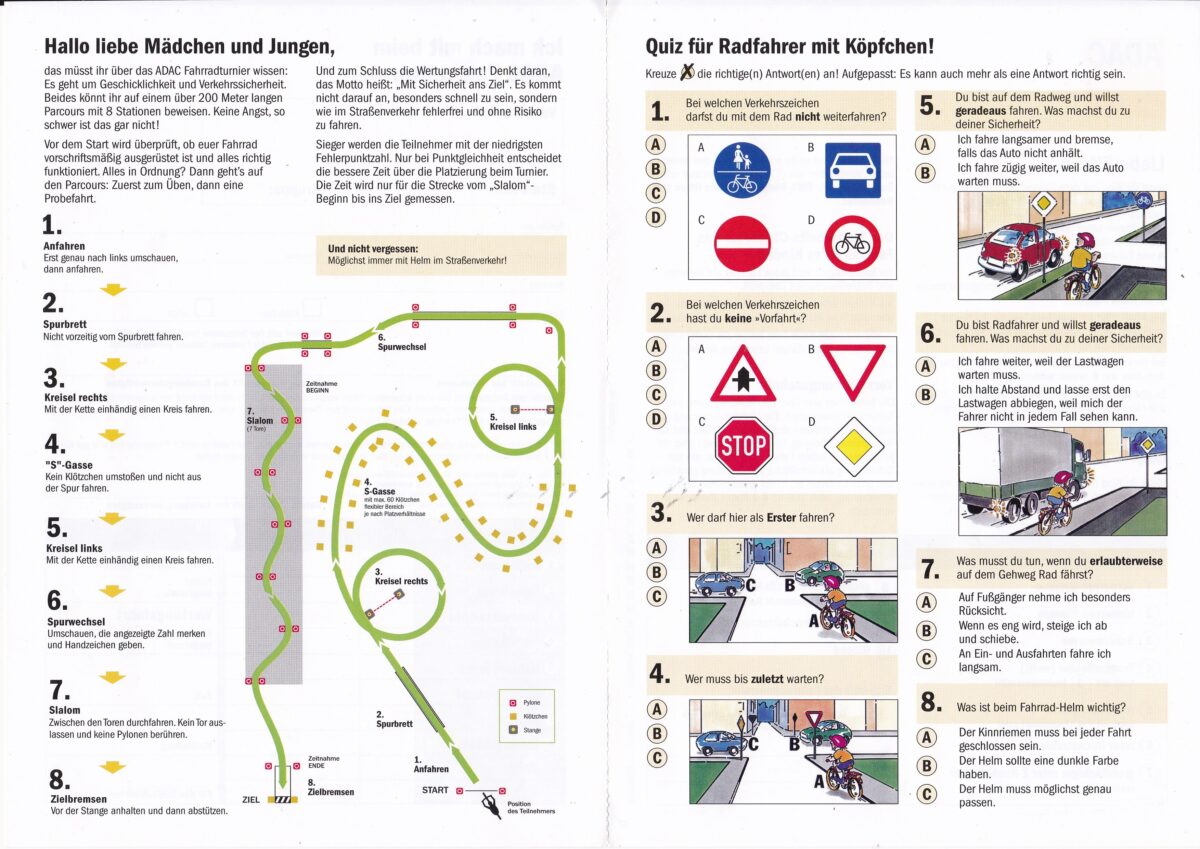 Unterrichtsmaterial für die Vorbereitung und die notwendige Einverständniserklärung stellte der ADAC vorab zur Verfügung. Für ein „Quiz für Radfahrer mit Köpfchen“ wurden die wichtigsten Verkehrszeichen, Vorfahrtsregeln und Sicherheitsmaßnahmen vermittelt.