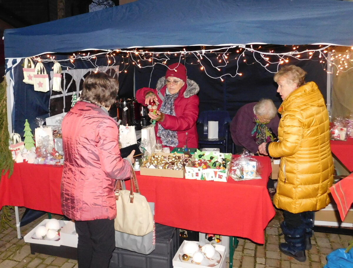 Erstmals dabei sind Beatrix Krauß aus Guttenthau und Andrea Nickl aus Speichersdorf, die ihren Gästen Pulled Pork, Martini Granatapfel und Havanna Cola servieren. Daniel Herrmann bietet Kinderkleidung an, während Andrea Weber mit Gelee, Likören, Plätzchen, Lebkuchen und Dekoartikeln aufwartet. Auch Herbert Opel mit seinem Angebot an Gegrilltem und Currywurst sowie viele weitere Aussteller bereichern den Markt. Besonders hervorzuheben ist die Schlaganfallselbsthilfegruppe unter Leitung von Angela Fraunholz, die selbstgemachte Liköre und Weihnachtsdekorationen anbietet.