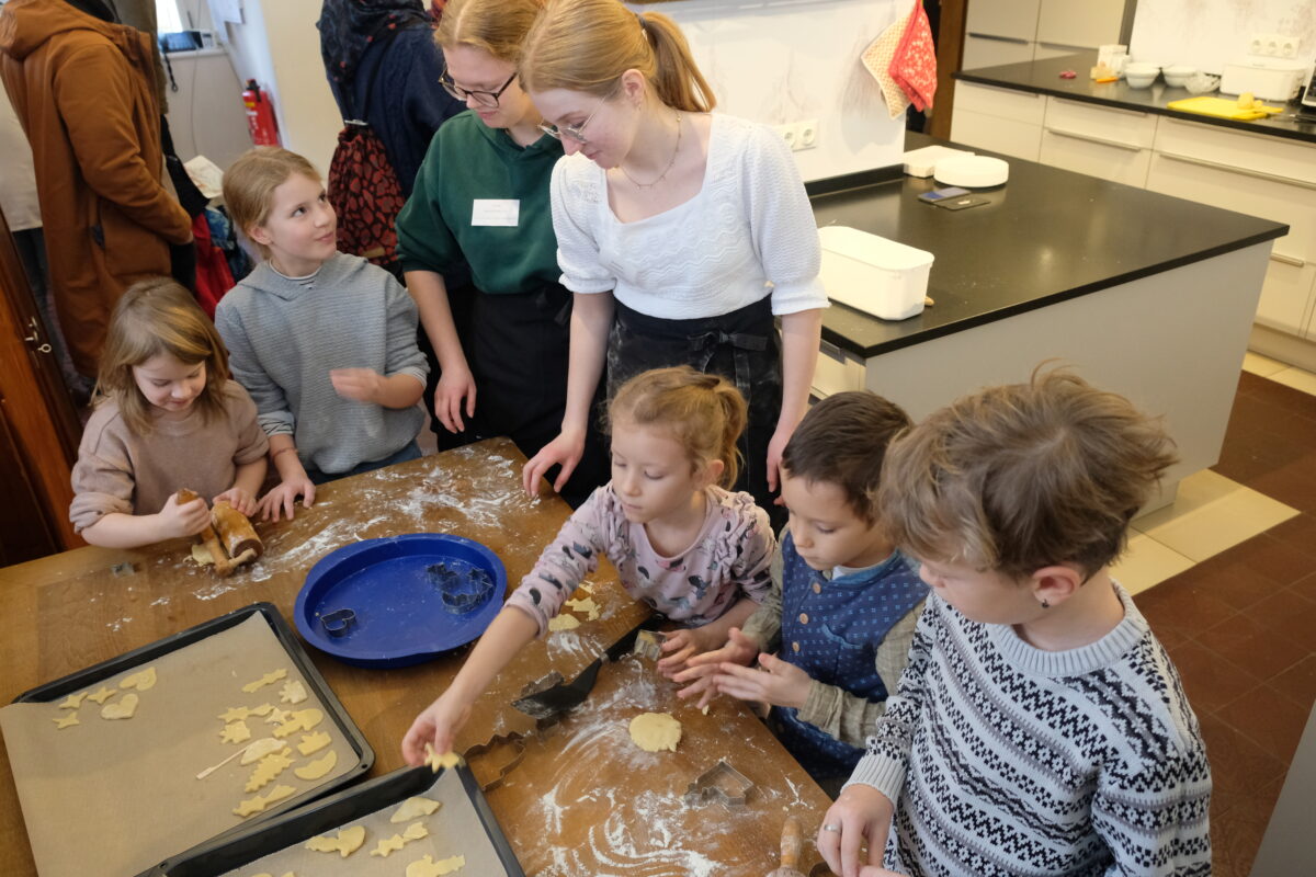 Staunen und Bewundern war angesagt. Imponierend waren die mächtigen Krippen in unterschiedlichen Interpretationen in der Klosterkirche und in den Klosterräumen, die sogenannte Lebendige Krippe der Grundschule Speinshart im Dientzenhofer-Saal, die adventliche Musik der Musikschule, ein kleiner Adventsmarkt im Kreuzgang, eine „Stille im Advent“ in der Taufkapelle als Rückzugsort und Oase des Gebets, umrahmt vom Chor Cantemus, eine Einladung zur Vesper, ein Weihnachtspostamt oder die fröhliche Weihnachtsbäckerei in der Großküche der Abtei. Der Nachwuchs durfte unter Anleitung des Hauswirtschaftsteams das Plätzchen-Backen üben.