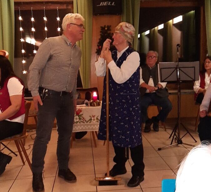 Natürlich gehört zu so einem Abend ein Sketch von Regina Schmid und Rudi Förster. Am Freitag lautete das Motto: das Wunschkind. Beide waren bei diesem lustigen Stück voll in ihrem Schauspieler-Element. Am Ende durfte das traditionell gemeinsam gesungene Lied „Wenn ein Licht im Dunkeln brennt“ nicht fehlen.