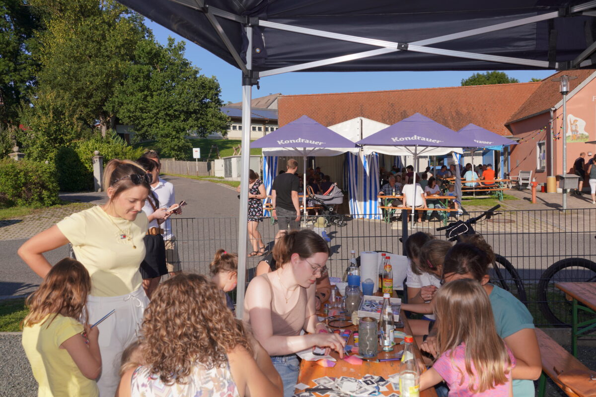 Am Nachmittag fanden die selbstgebackenen Kuchen und Torten der Dorffrauen reißenden Absatz, wobei das junge Grillteam Grillfleisch oder auch Bratwürste servierte. Auf dem Dorfplatz ließen es sich die Gäste gut gehen, die fleißige Schankmannschaft konterte aufkommenden Durstgefühlen sofort mit kühlen Getränken.