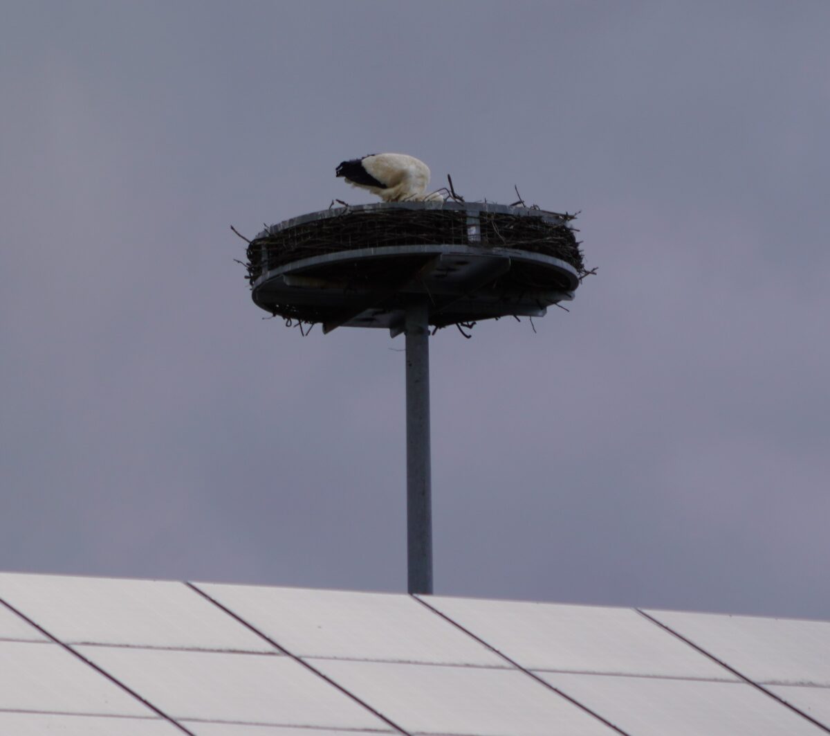 Auf den umliegenden Wiesen holen sie sich Nahrung und bereiten sich im Storchennest, das 170 cm Durchmesser hat, auf die warme Zeit mit hoffentlich Nachwuchs vor.