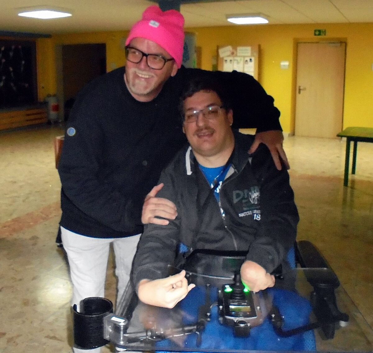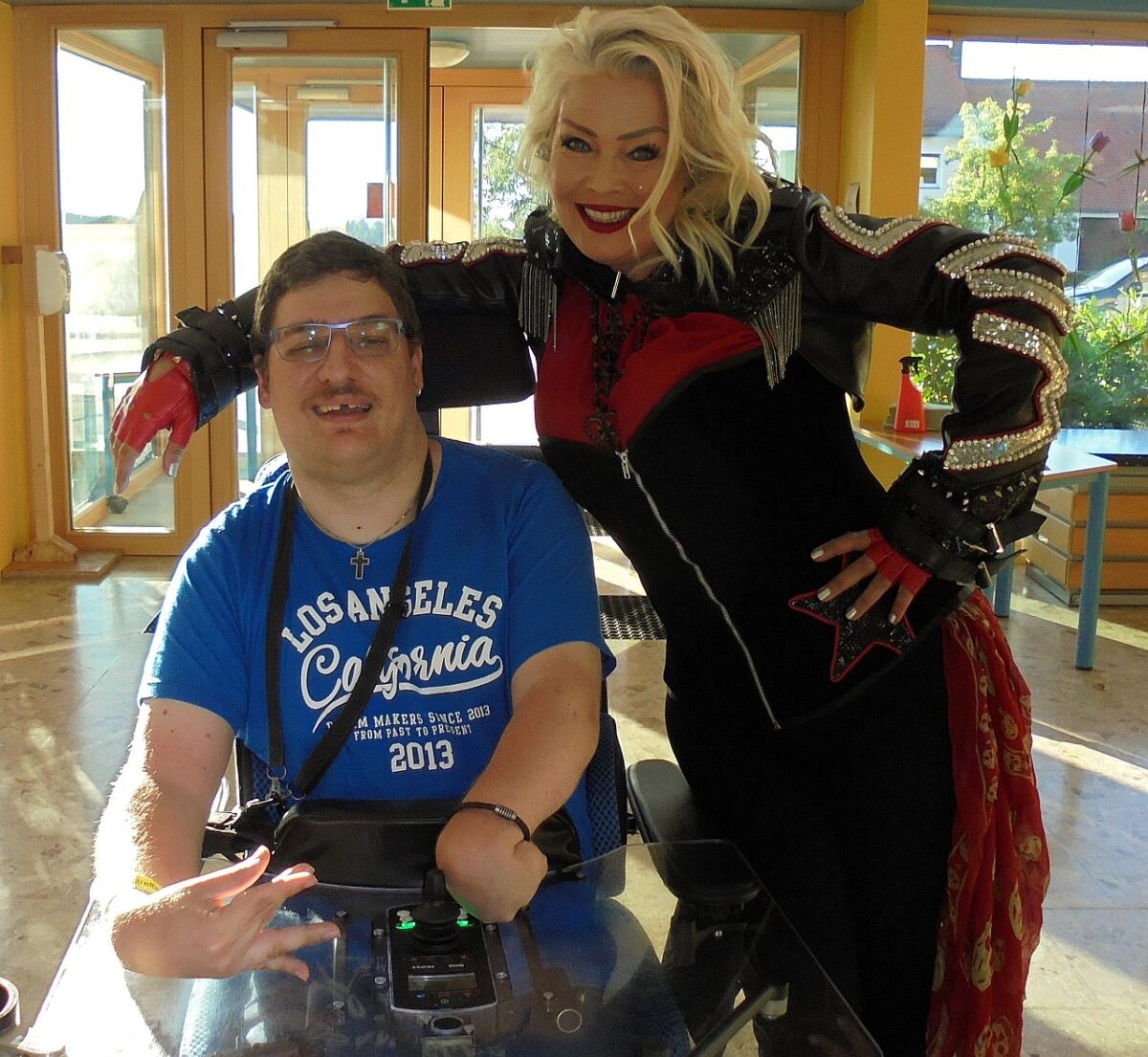Der 32-Jährige, der seit Geburt an spastischer Tetraparese und Tetraplegie leidet, folgte mit Begleitung seiner Mutter Roswitha der Einladung von Oberpfalzfestival-Pressesprecher Peter Gattaut nach Tännesberg, der dieses „Meet and Greet“ im Vorfeld, unter Absprache der beiden Künstler-Agenturen, ermöglichte.