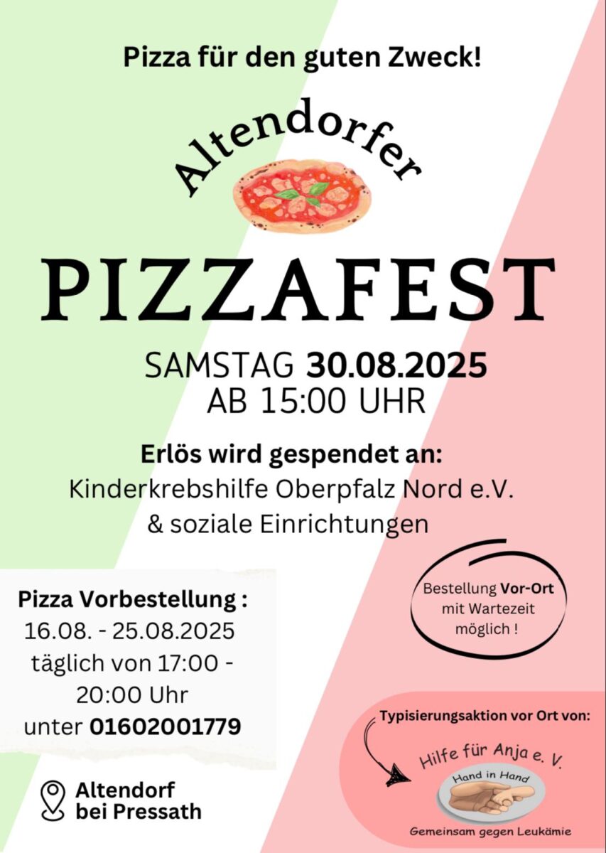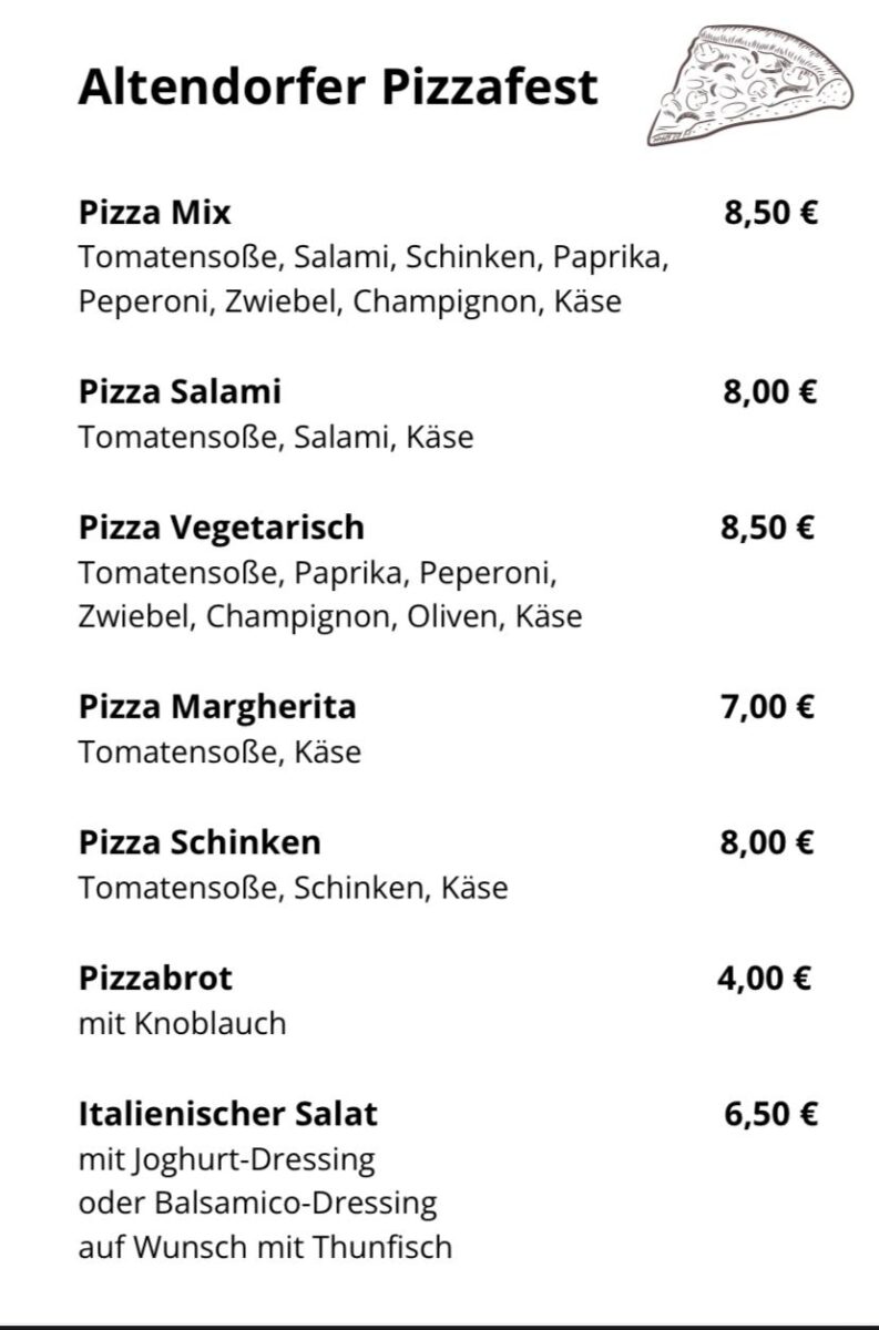 Natürlich sind auch spontane Bestellungen am Festtag vor Ort möglich. Die Altendörfer Pizzabäcker stehen in den Startlöchern und freuen sich auf viele hungrige Gäste, die nebenbei auch noch etwas Gutes tun wollen.