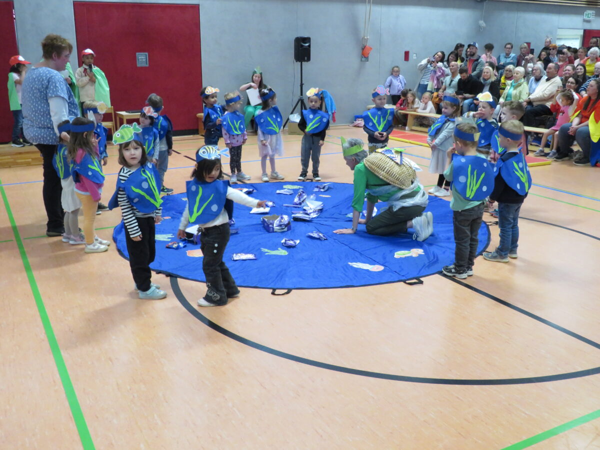 Der Südpol war das erste Ziel. Im Tanz wurden die schmelzenden Eisschollen zur Gefahr für den Lebensraum der Pinguine. Vom Südpol reisten die Kinder in den Regenwald. Dabei wiesen der Papagei gemeinsam mit den Dschungeltiere auf die gefährliche Abholzung des Waldes hin. In der nächsten Station warnten befreiten die Kids eine Schildkröte aus Plastik, dass sich im Meer angesammelt hat. Bei ihrer letzten Station trafen die Superhelden auf eine Kamel. Das Kamel suchte verzweifelt nach Wasser. Das Kamel riet den Kinder, dass es wichtig ist, mit Wasser sorgsam umzugehen. Beim gemeinsamen Abschlusstanz riefen die Kinder alle Menschen zum sorgsamen Umgang mit der Natur und dem Klima umzugehen.