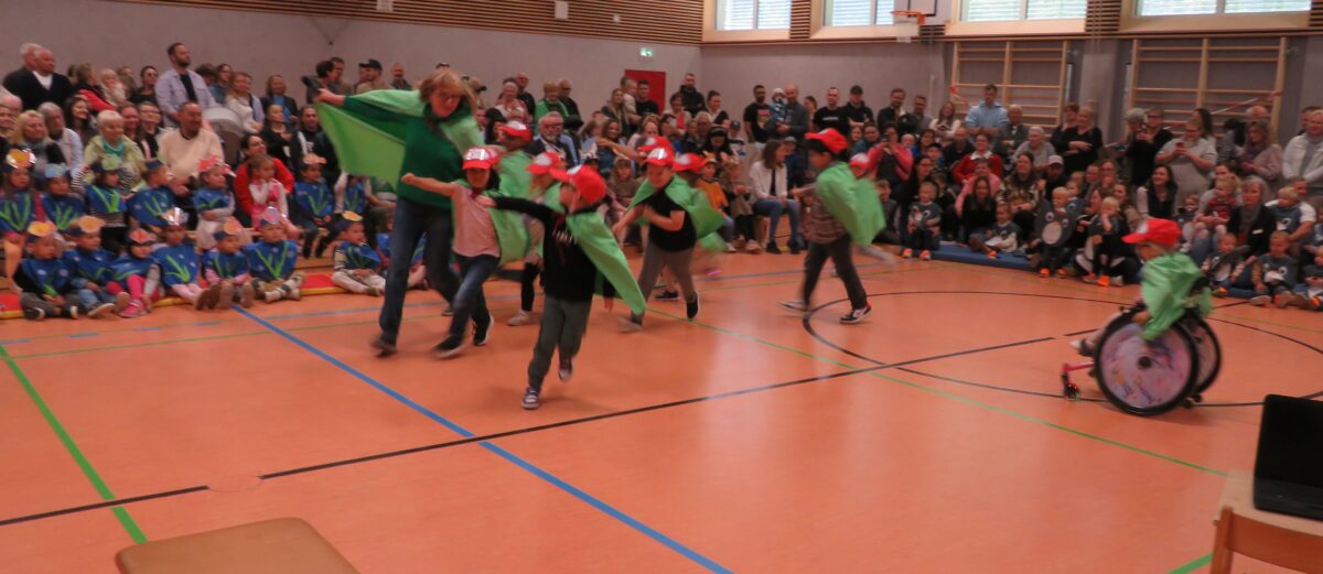 In der Turnhalle der Mittelschule drängten sich die Besucher um die Spielfläche. Unter dem Motto „Die Klimahelden reisen um die Welt“ zeigten die Kids, dass die Umwelt allen Menschen wichtig sein sollte. Leiterin Martha Pöllath Begrüßte die Gäste. Gemeinsam mit den Umwelthelden gab sie den Startschuss zum Spiel. In der Zentrale legten die „Superhelden“ die Reiseroute fest.