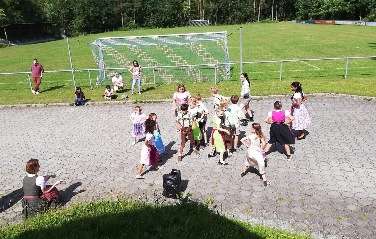 Nach einer längeren durch Corona bedingten Auftrittspause sorgten bei dem Aktionswochenende außerdem die „Kirwa-Kids“ von der TSG Weiherhammer für Abwechslung. Die unter der Leitung von Susanne Martin und Barbara Heibl einstudierten volkstümlichen Kirwa-Tänze, die von den Kindern voll Freude und Engagement vorgetragen wurden, sorgten für eine willkommene Abwechslung. Mit einem großen Applaus konnten die Zuschauer die Kinder zu einer Zugabe in Form eines schönen Kirchweihreigens animieren.