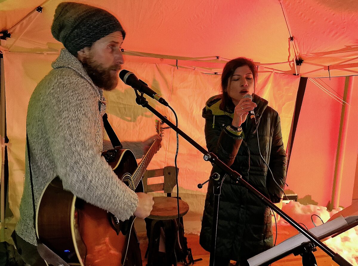 Musikalisch setzten mit ihrem Gesang Tine und Hanson, der sie auf der Gitarre begleitete, die Unterhaltung mit Weihnachtssongs fort. Zum Beispiel spielten sie „Winter Wonderland“. Es folgten Balladen und Popmusik.