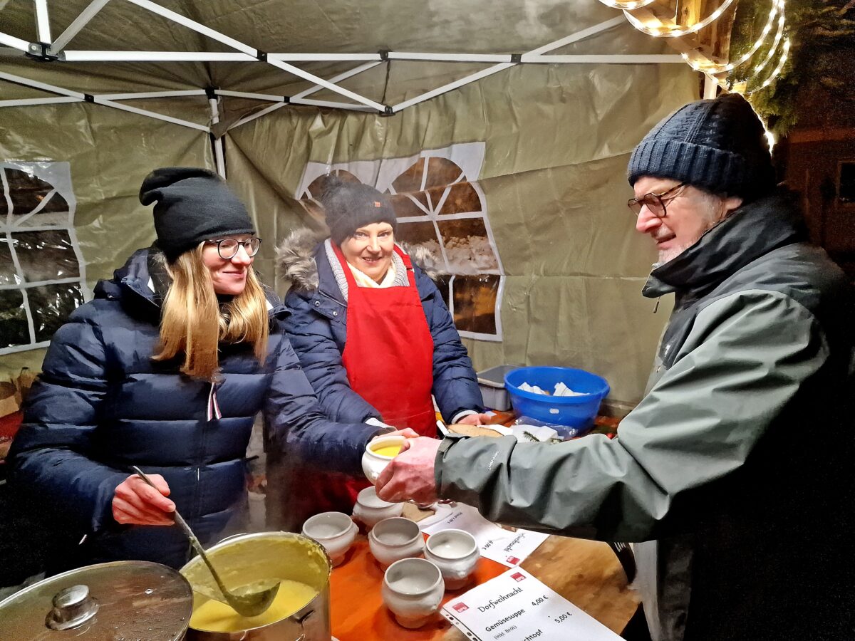 Gleich am Eingang vor dem Jakobsbrunnen hatte die SPD ihren Stand geöffnet. Sabine Bäumler und Michaela Nickl boten leckere Gemüse- und Gulaschsuppen an. Gut gewürzt und heiß waren die ausgegebenen 150 Suppen perfekt zum Aufwärmen. Sogar Nicole Bäumler, die Mitglied im Landtag ist, musste mit aushelfen, so stark war der Andrang.
