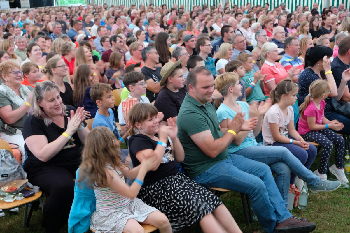 Die tierische „Dame“ lässt sich erst mal bitten. Gehört sich ja auch so. Doch dann wird sie „in Begleitung“ des Comedians Sebastian Reich zum umjubelten Star des Abends. Thema ist der „pure Zufall“. Reich & Amanda wecken Neugierde und steigern die Spannung der zirka 600 Besucher im vollbesetzten Festzelt. Mit einem fesselnden Mix geht die Reise in die verrückte Welt der Spontanität. Eine skurrile Geschichte folgt der anderen. Zunächst zielt der Kabarettist auf die „Mitmachplätze“ in den vorderen Reihen. Peter und Bianca aus der 3. Reihe werden zu Protagonisten auf der Bühne, die kleine Eva wird zur Assistentin und ein Happy Birthday to you zum 2. Geburtstag gilt der jüngsten Besucherin namens Lotte.