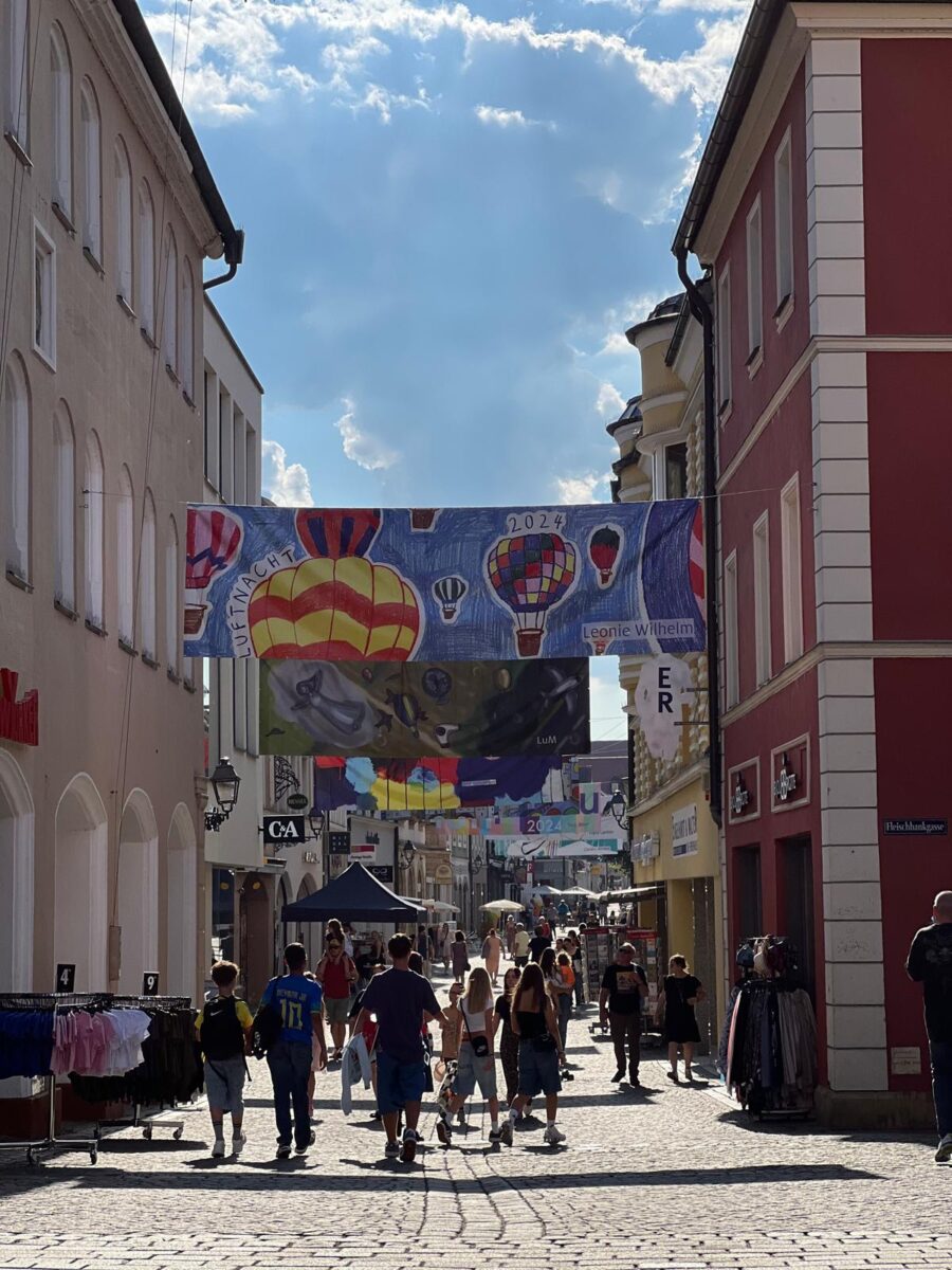 Die Banner über der Georgenstraße zur Luftnacht 2024, Foto Zorka Dotto. Foto: Zorka Dotto