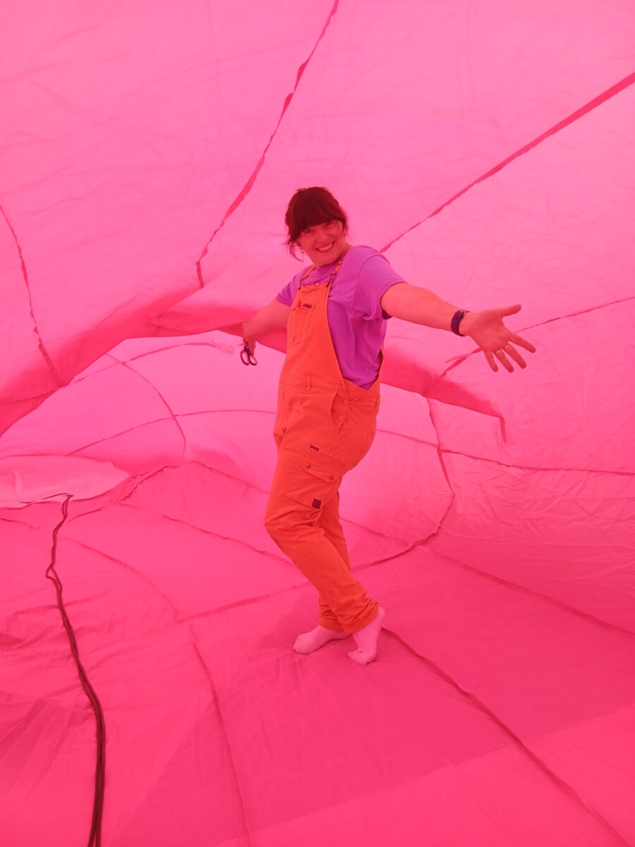 Die australische Künstlerin Amanda Parer in ihrem Werk Dome beim Testaufbau der Objekte in Amberg, Foto Ina Bogner. Foto: Zorka Dotto
