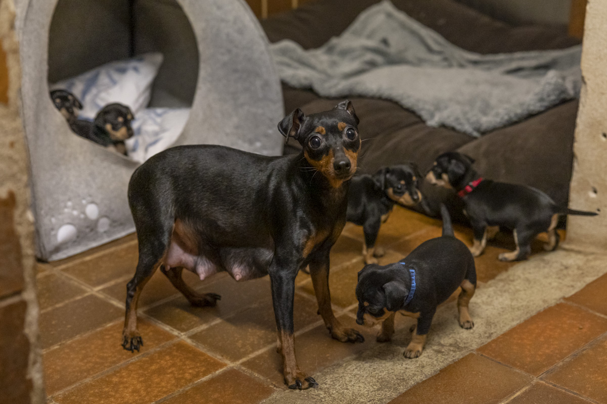 Was sie finden? Sechs kleine Welpen, Pinscher, jeweils nur eine Handvoll Hund. Dazu die Eltern: Pinscherhündin Hatice und Rüde Pico. Von artgerechter Haltung kann keine Rede sein. Das Zimmer ist zugemüllt. Tüten, Essenreste, Tabletten. Die Wohnung liegt im zweiten Stock, an Auslauf ist im Hinterhof – einem Parkplatz – nicht zu denken.