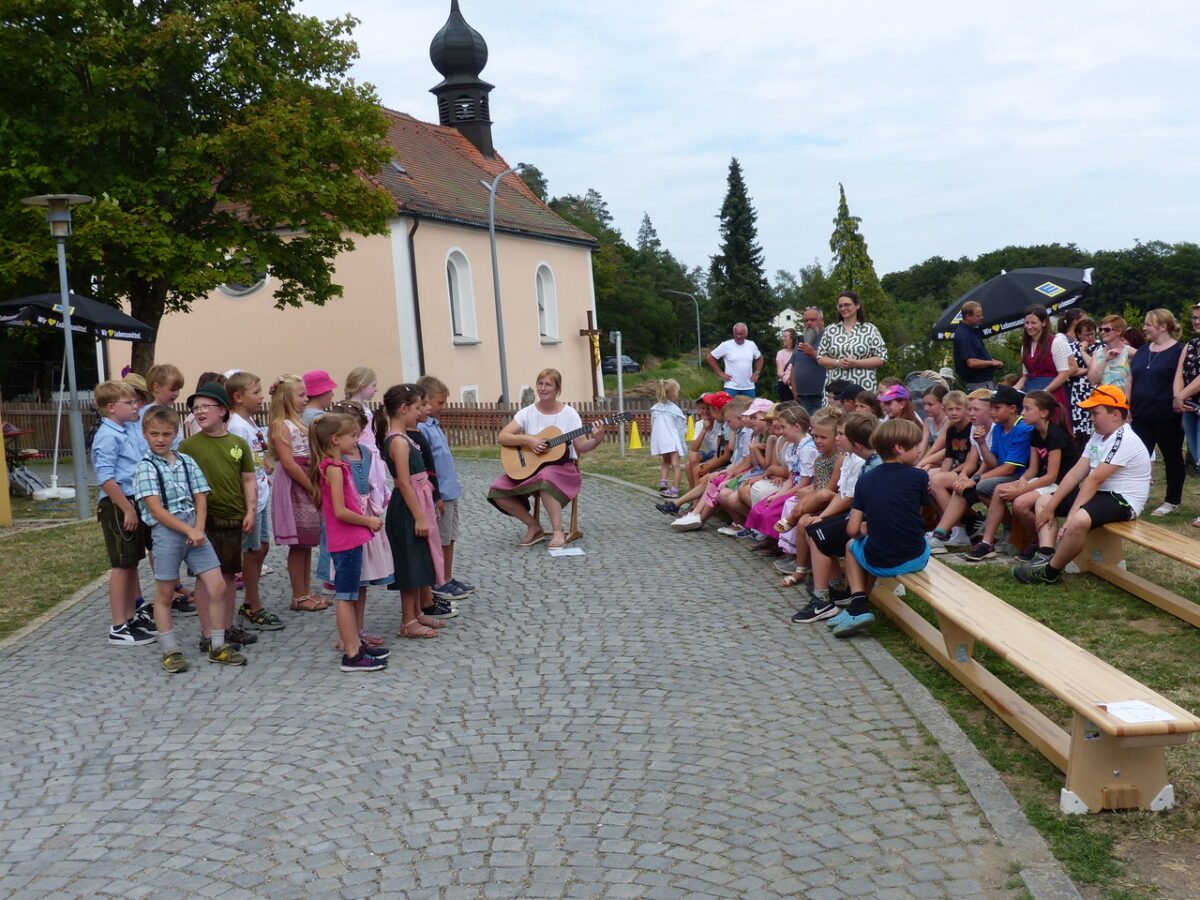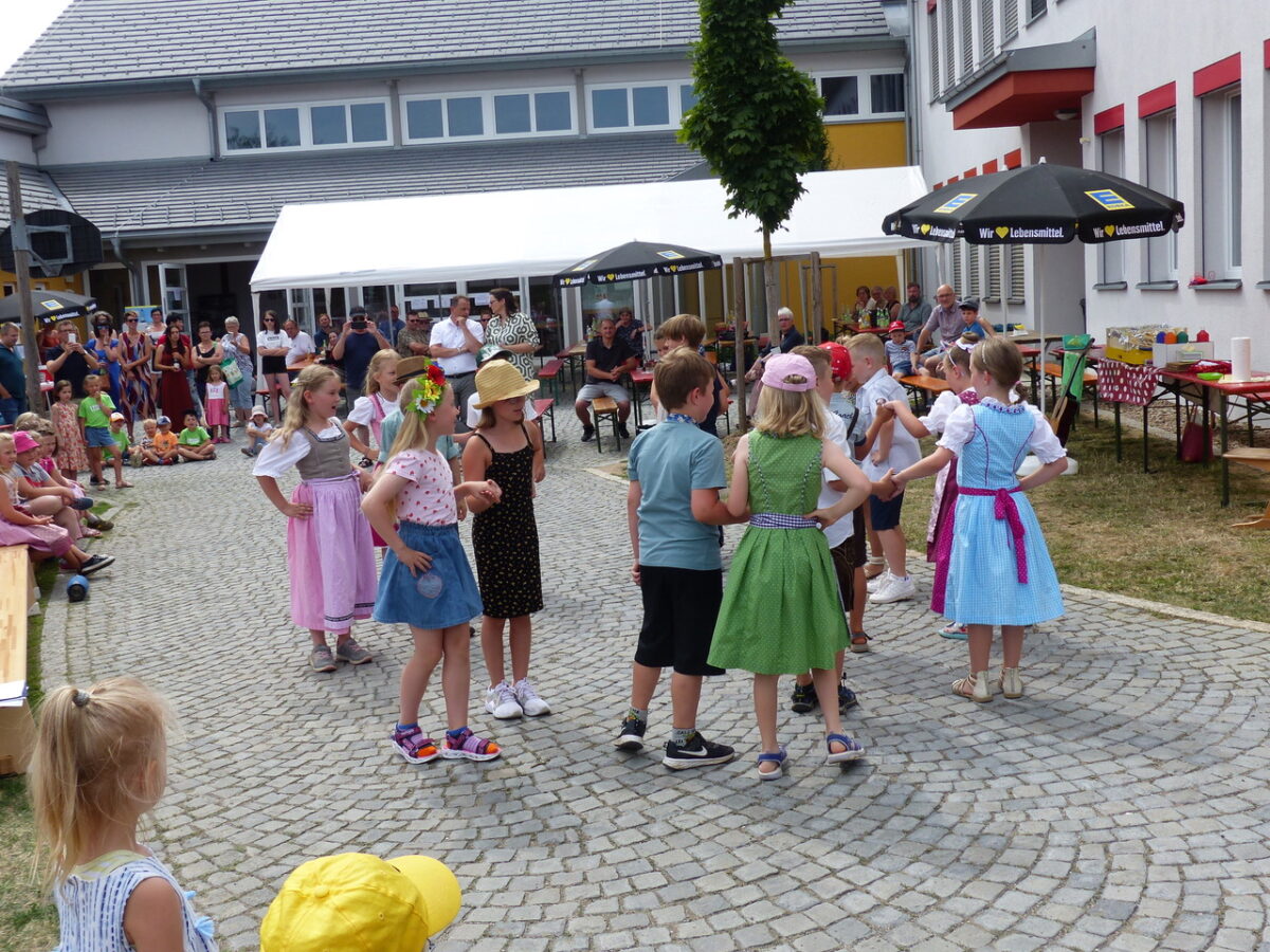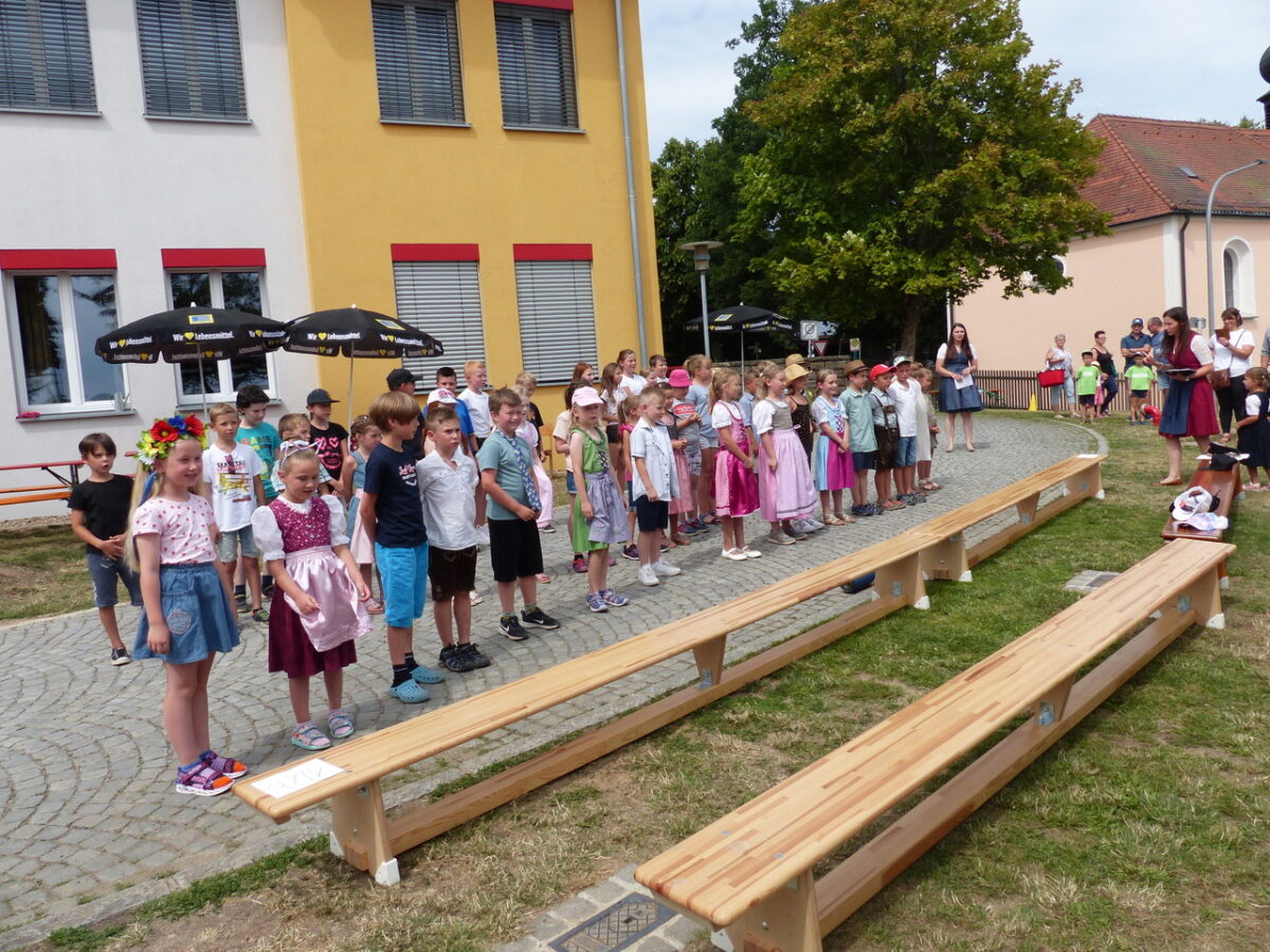 Mit Freude und Elan führten die Mädchen und Buben ihre einstudierten Auftritte auf und so wie die Sonne lachte, so gut waren alle drauf. Schulleiterin Katja Meidenbauer eröffnete den Reigen am Schulhof und Bürgermeister Anton Kappl und Pfarrer Adam Nieciecki dankten allen für ihre Mühen. Mit den Lehrerinnen Sonja Kramer, Magdalena Prechtl, Martina Rauch, Simone Friedl, Andrea Scherm und Katja Gieler hatten die Kinder die Aufführungen „Alle meine Entchen, SiebenschrittTanz“ und das „Flohlied“ einstudiert und vorgetragen.