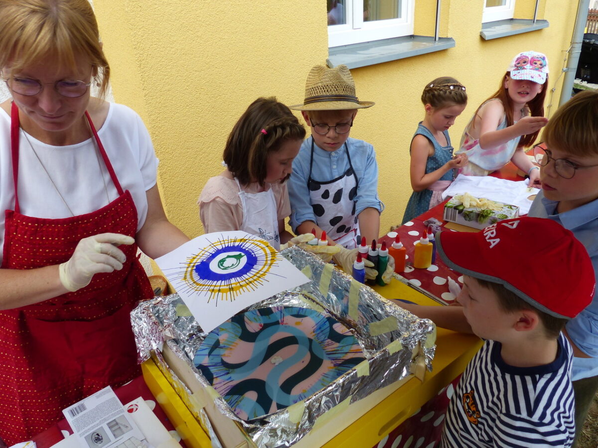 Dafür ernteten sie von den Eltern, Großeltern und Gästen viel Applaus. Beim Basteln von Kreiseln, dem Wassertransportlauf, beim Gestalten von Buttons, Reifenrennen und dem Bedrucken von T-Shirts hatten die Grundschüler große Freude. Alle waren mit Feuereifer dabei, besonders stolz waren sie auf ihre selbstbedruckten Baumwollhemdchen, die jetzt bunt erstrahlen.