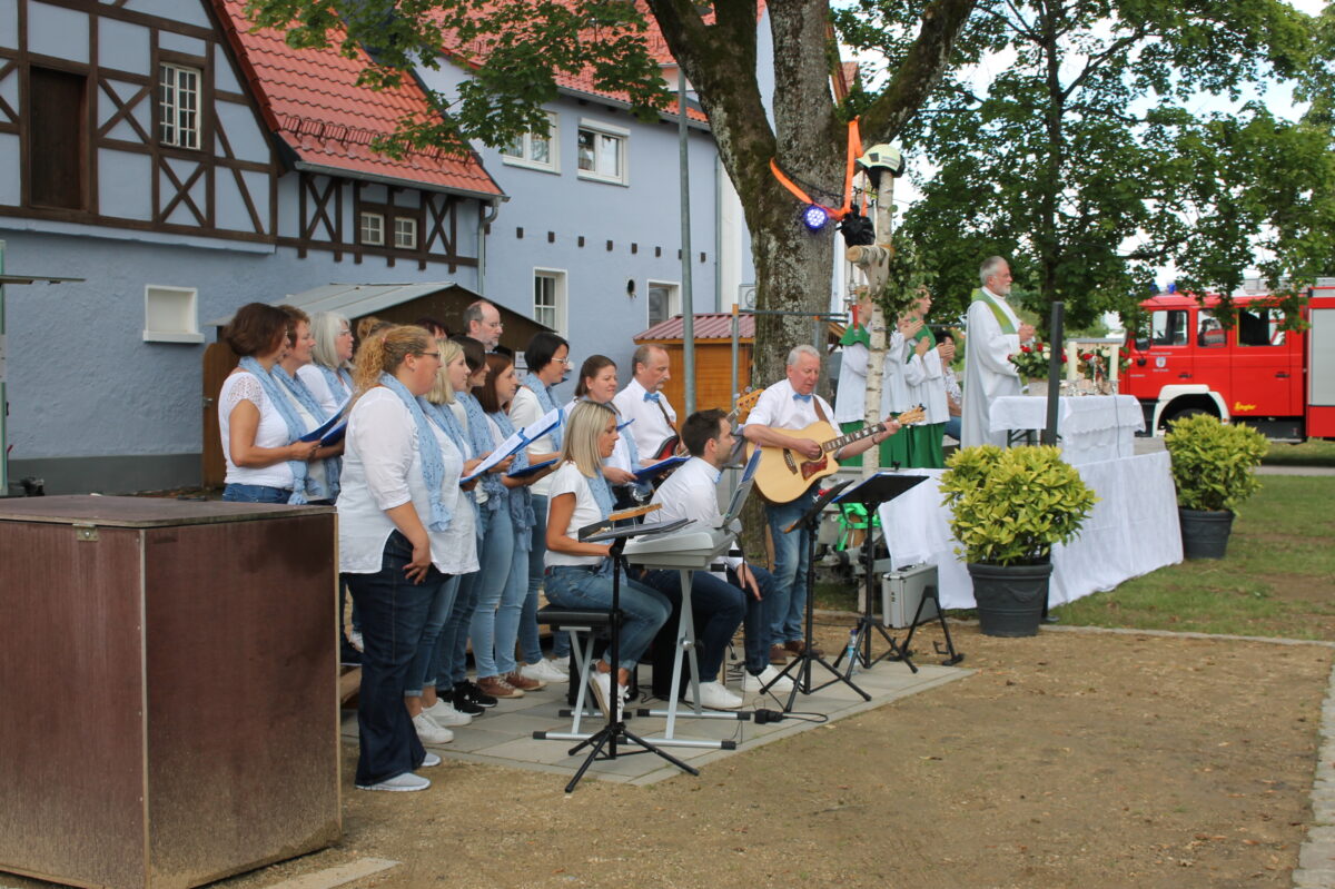 Ihnen wünschte Prechtl den „Segen von oben“, der ihnen in Extremsituationen helfen könne, bis an die Grenzen ihrer Kraft zu gehen: „Feuerwehrleute erleben, wie schnell der Mensch in der Konfrontation mit ‚Urgewalten‘ seine Überheblichkeit verliert.“ Mit modernen Anbetungs-, Trost- und Ermunterungsliedern setzte der christliche Pressather „Blue Heaven“-Chor den mit begeistertem Beifall bedachten musikalischen Rahmen der Eucharistiefeier, an die sich die Begrüßungsworte von Marius Seitz anschlossen. Der Vorsitzende des Pressather Feuerwehrvereins dankte der Stadt, den Nachbarfeuerwehren aus Zintlhammer und Riggau und den „Wanderfreunden“ für deren Unterstützung bei der Festorganisation: „Das macht ja den Feuerwehrgeist aus: dass wir uns gegenseitig helfen und gemeinsam vieles schaffen.“