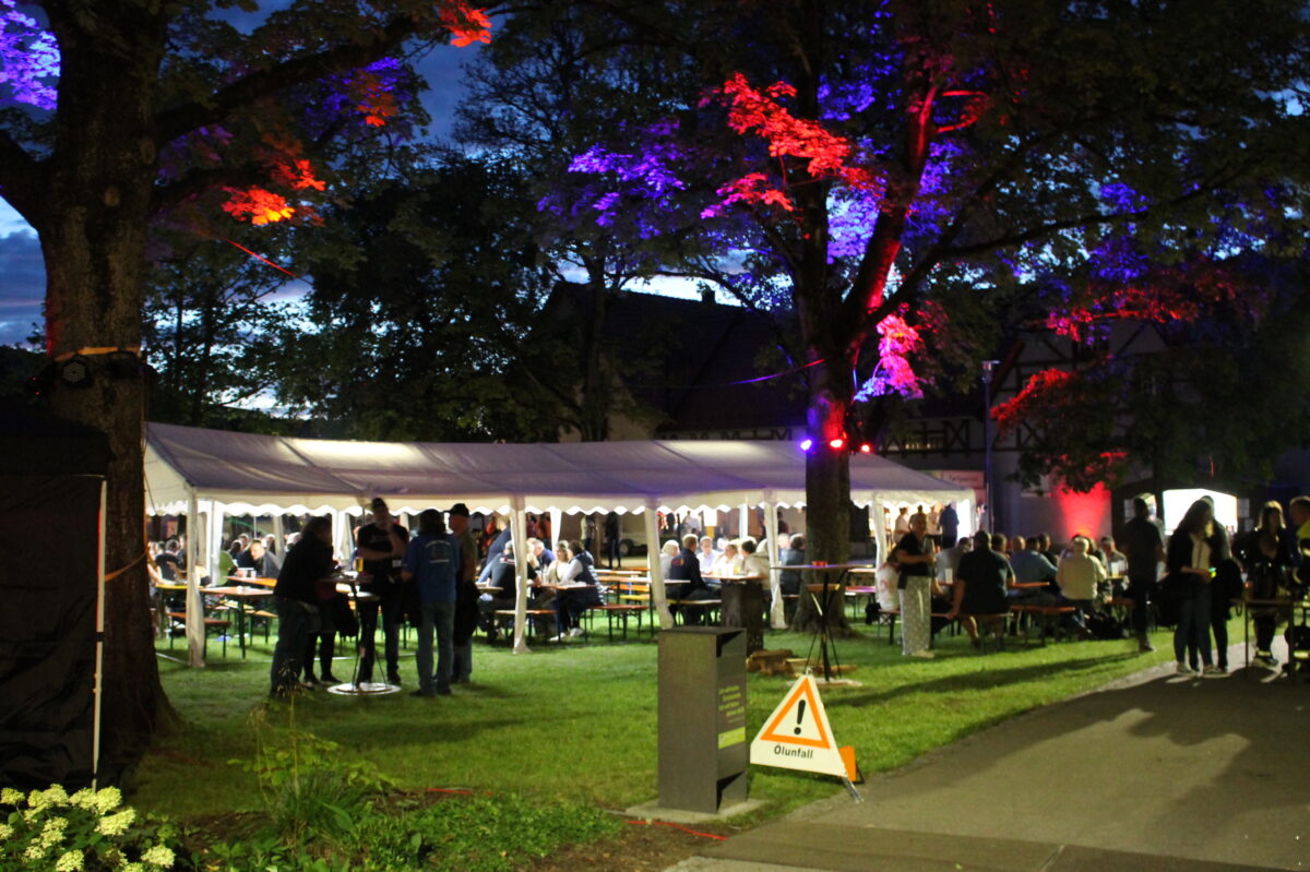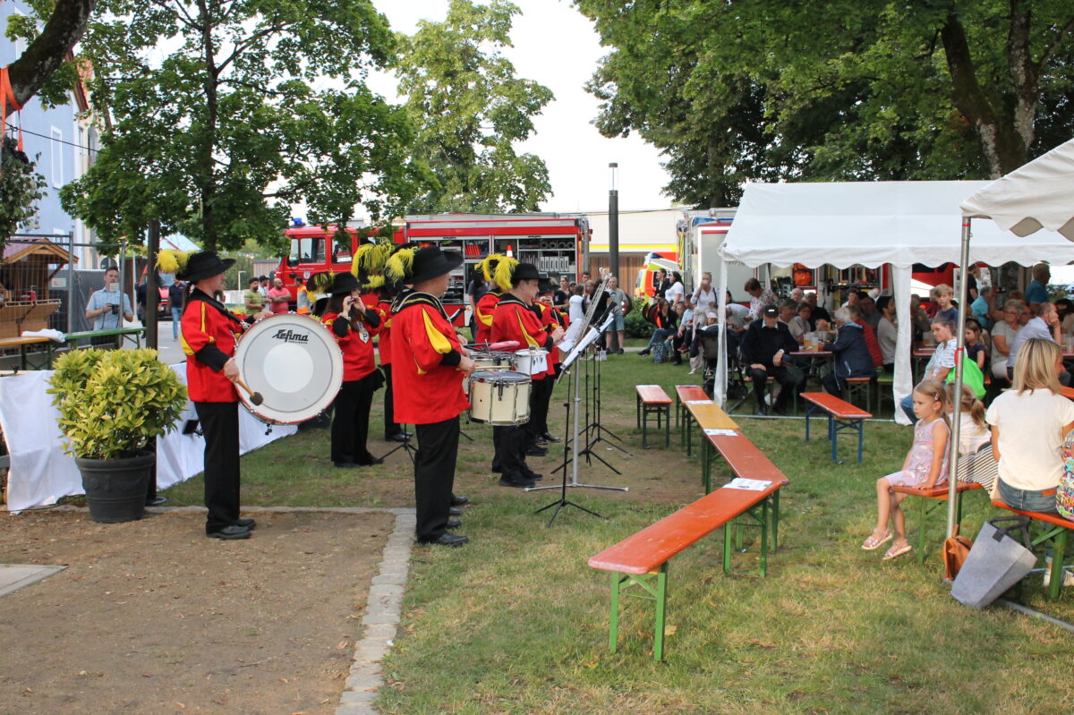 Um „Retter von morgen“ warb ein Informationspavillon der Kinder- und Jugendfeuerwehren. Das perfekte milde Frühsommerabendwetter, mehrere Speisen- und Getränkestände, eine Bar und nicht zuletzt der Spielmannszug mit einem gut 20-minütigen Platzkonzert trugen das Ihre zur harmonischen und friedlichen Feststimmung unter den nach Dämmerungseinbruch in dezentes farbiges Licht getauchten Bäumen bei. So konnte Kommandant Andreas Kneidl die rege besuchte zweite „Feuerwehrnacht“ als Erfolg und Ansporn für die eigene Arbeit werten: „Das große Interesse zeigt uns, dass in Pressath die Solidarität der Bevölkerung mit den Feuerwehren noch intakt ist.“