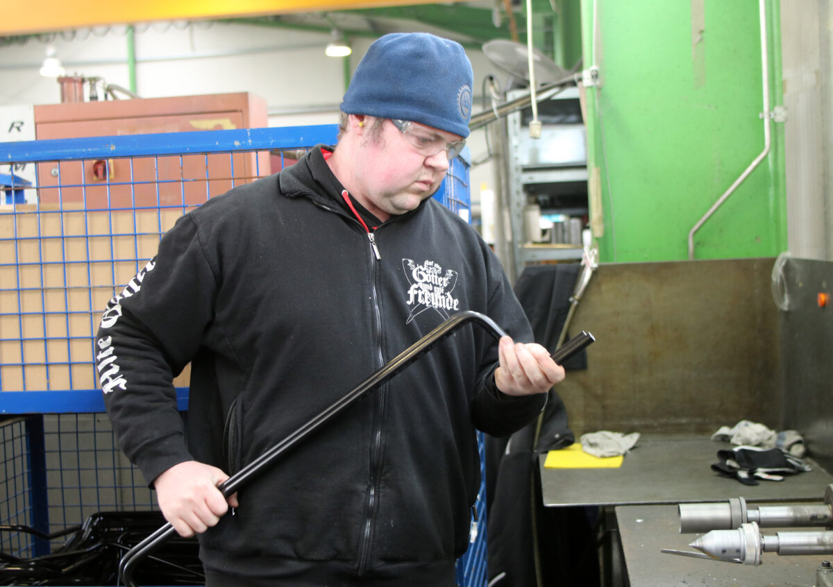 Und mit Bravour bewältigen – wie Markus Amann, technischer Leiter bei der Senger GmbH, und Bereichsleiterin Elisabeth Amann übereinstimmend erklären. „Roland und Franz, die bei uns flexen und schleifen, sowie entgraten, Rohre umformen und zuschneiden, gehören inzwischen zu unserem Team fest dazu. Sie sind zuverlässig, arbeiten sehr selbstständig und genau. Sie haben den Quantensprung von der HPZ-Werkstatt zu uns geschafft“, freut sich Markus Amann.