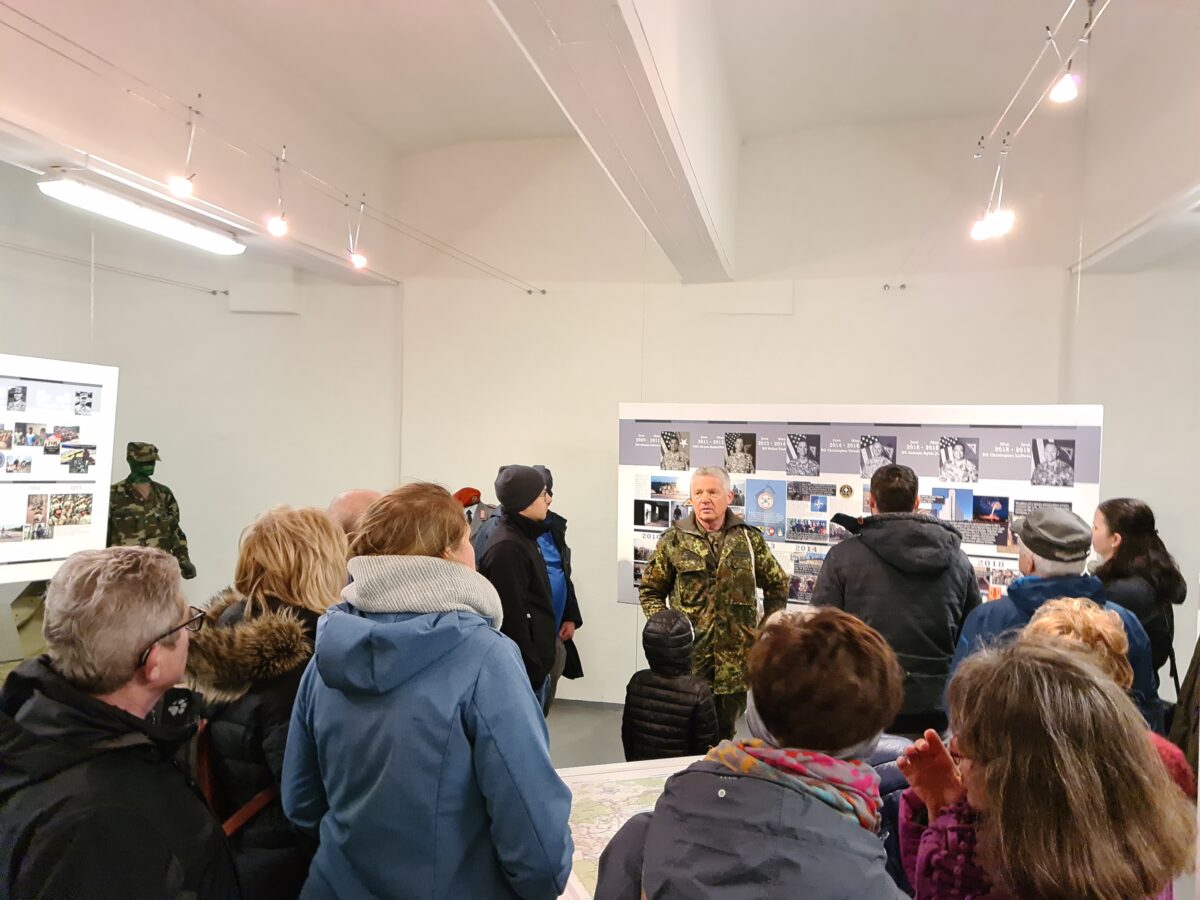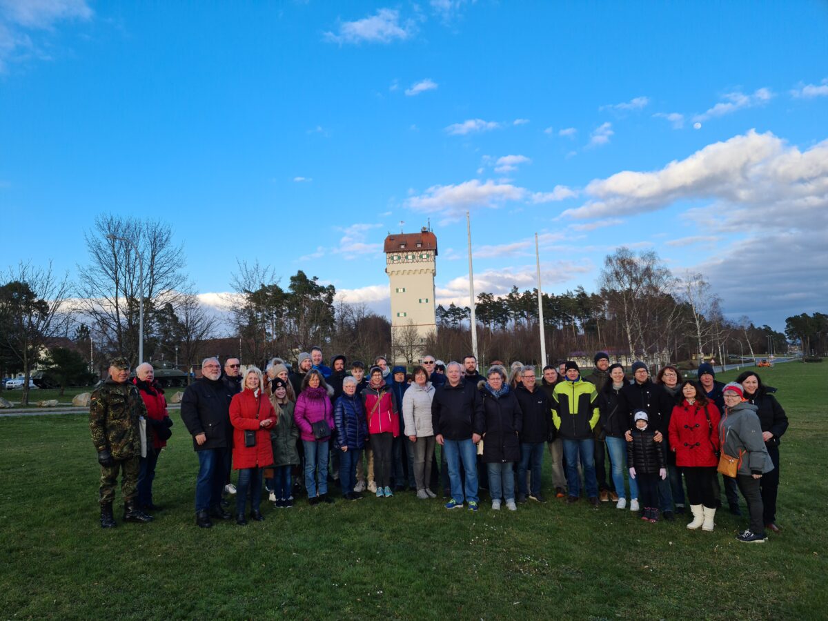 Da Lagerrundfahrten wegen der aktuellen Sicherheitslage und dem verstärktem Training ausgesetzt sind, nutzte das Museum die Gelegenheit für eine Besichtigung auch rund um den Wasserturm. Die Gruppe informierte sich über den ersten Schuss, das ehemalige Hauptquartier des 7th Army Training Commands, das Lazarett, wo Elvis Presley Geld abhob und dem ehemaligen Wachhäuschen am Gate 1. Natürlich war auch der Schießlärm ein Thema. Morgenstern fasste dabei die Meinung der meisten Grafenwöhrer zusammen: „Mit einem Truppenübungsplatz muss man einiges in Kauf nehmen, aber man bekommt viel zurück.“