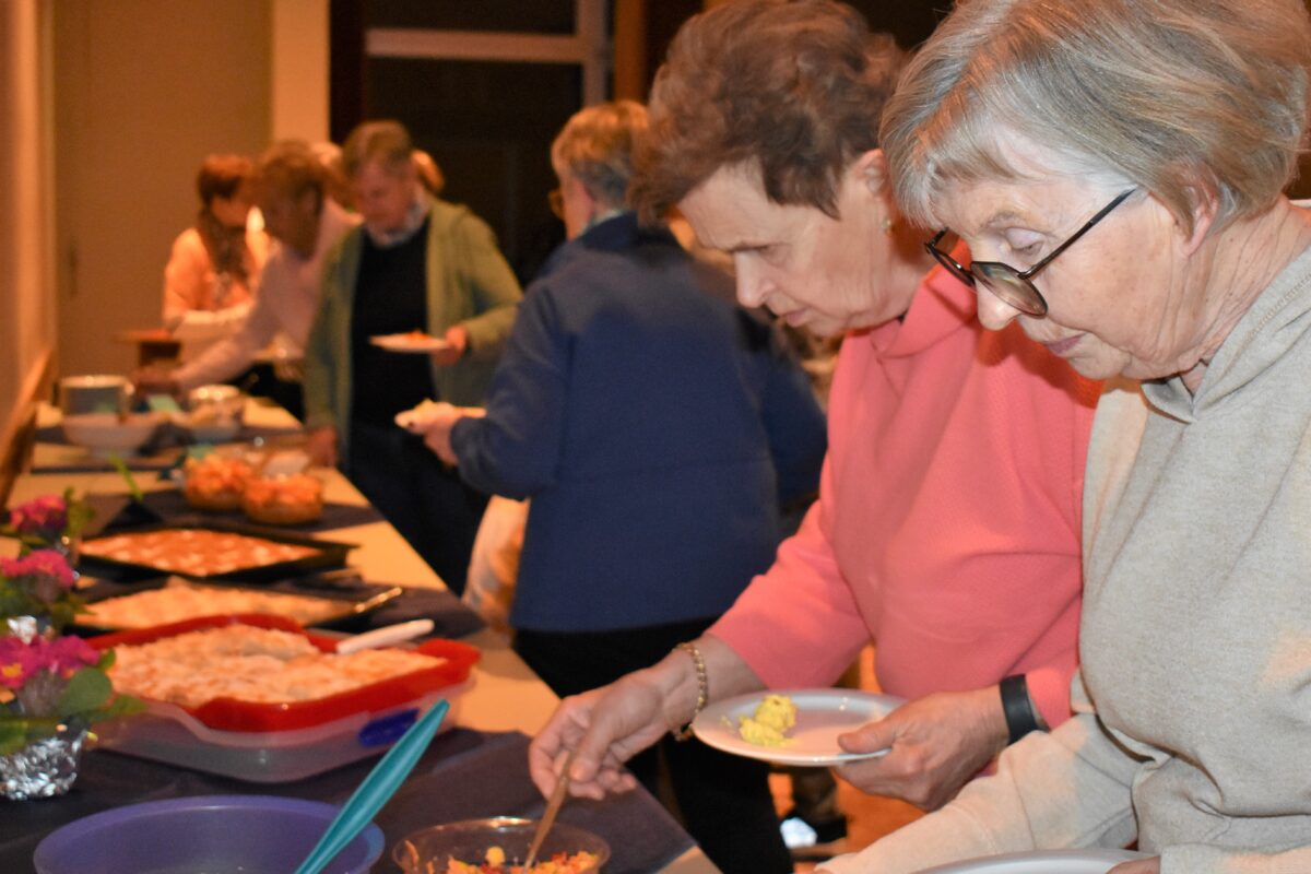 Abschließend erteilte Pfarrer Daniel Fenk den Segen. Danach waren alle eingeladen, Platz zu nehmen und die von Frauenbund-Mitgliedern vorbereiteten Speisen, wie den Ananas-Kokos-Kuchen oder Aufstriche aus Feigen und Thunfisch schmecken zu lassen.