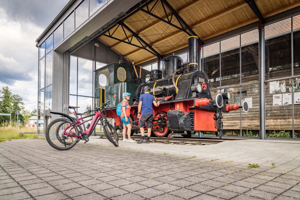 Die ILE Brückenland Bayern-Böhmen hat wieder ein buntes Programm entlang des Radwegs auf die Beine gestellt – unter anderem eben mit Maibaumschnitzen und anschließendem Aufstellen in Schönsee. Ein kleines Highlight passend zum Thema Bahntrassen-Radwege findet man in Oberviechtach: hier kann die historische Hanomag-Dampflok, die direkt am Radweg an die frühere Bahnlinie erinnert, besichtigt werden.