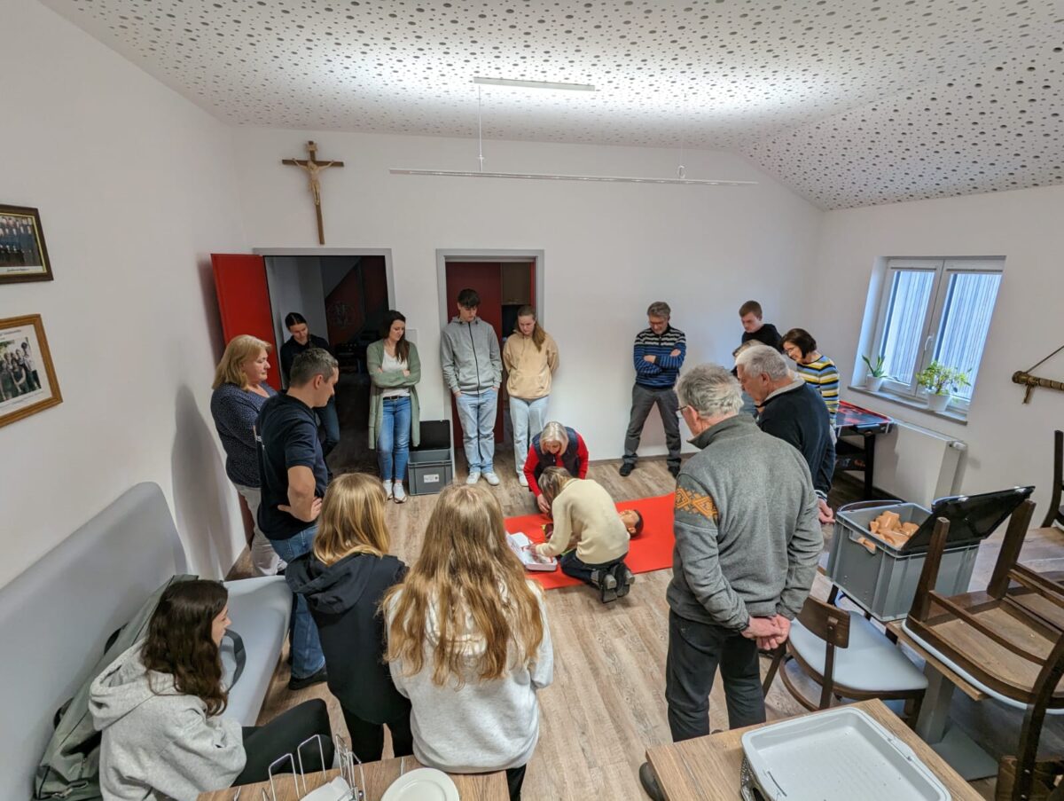 Organisiert hat diesen Kurs Andreas Eckert, welcher als Ortssprecher für Dießfurt und Troschelhammer diese Förderung beantragt hatte. Teilgenommen haben 16 Personen im Alter zwischen 14 und 71 Jahren. Unter der fachlichen Leitung von Thomas Rauch vom BRK und Verena Wallner von der Wasserwacht, lernten die Teilnehmerinnen und Teilnehmer alles Wichtige, um im Ernstfall schnell und richtig Erste Hilfe leisten zu können.